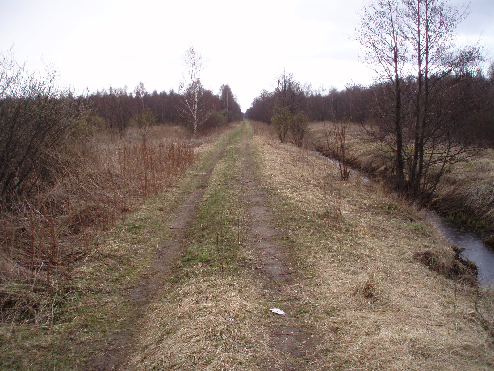 Бывший переезд (пересечение с автодорогой Коптево - Подозёрский) у села Архангел. Вид в северном направлении.