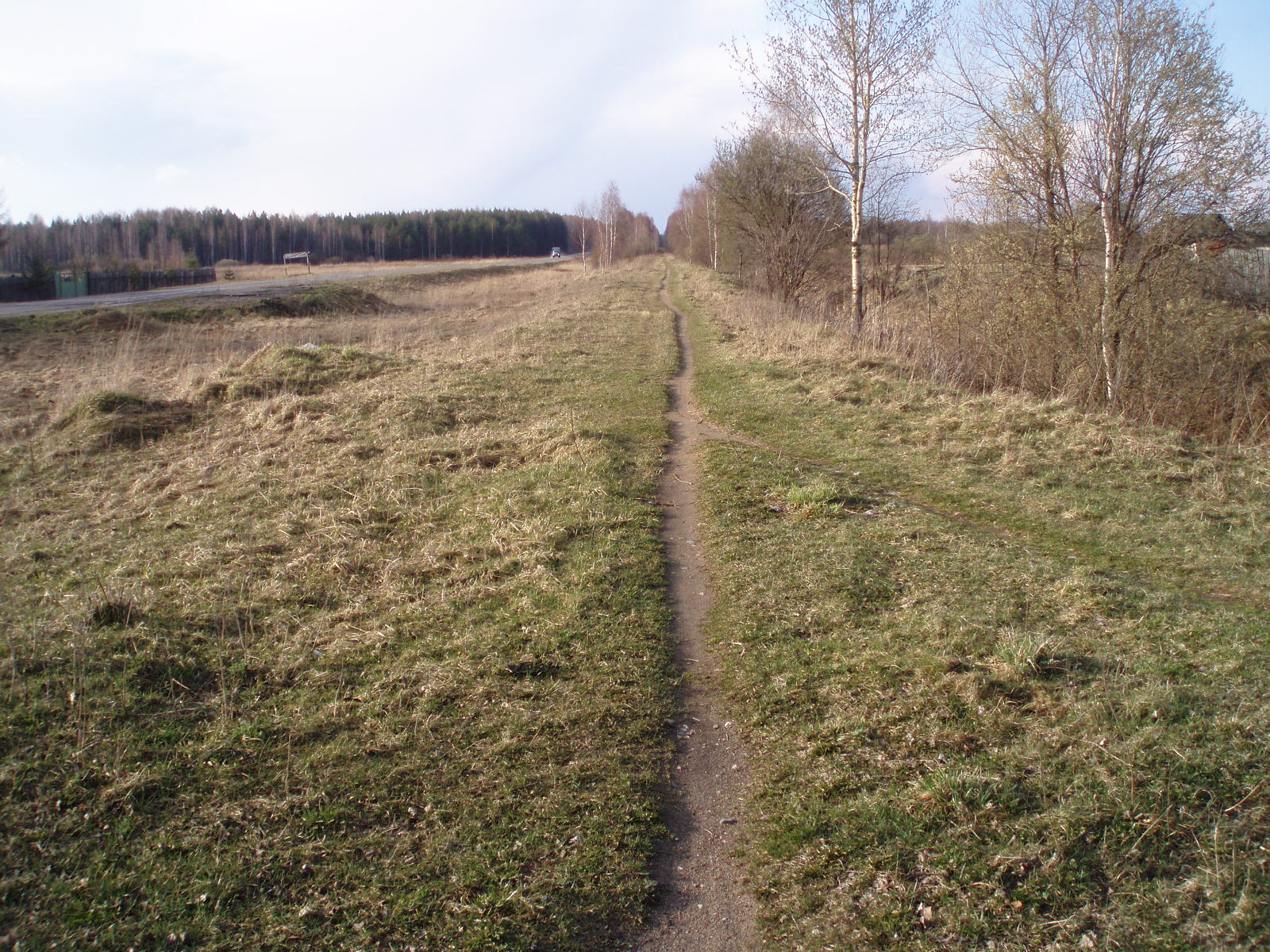 Разобранная линия у переезда на северной окраине посёлка Октябрьский. Вид в северном направлении.