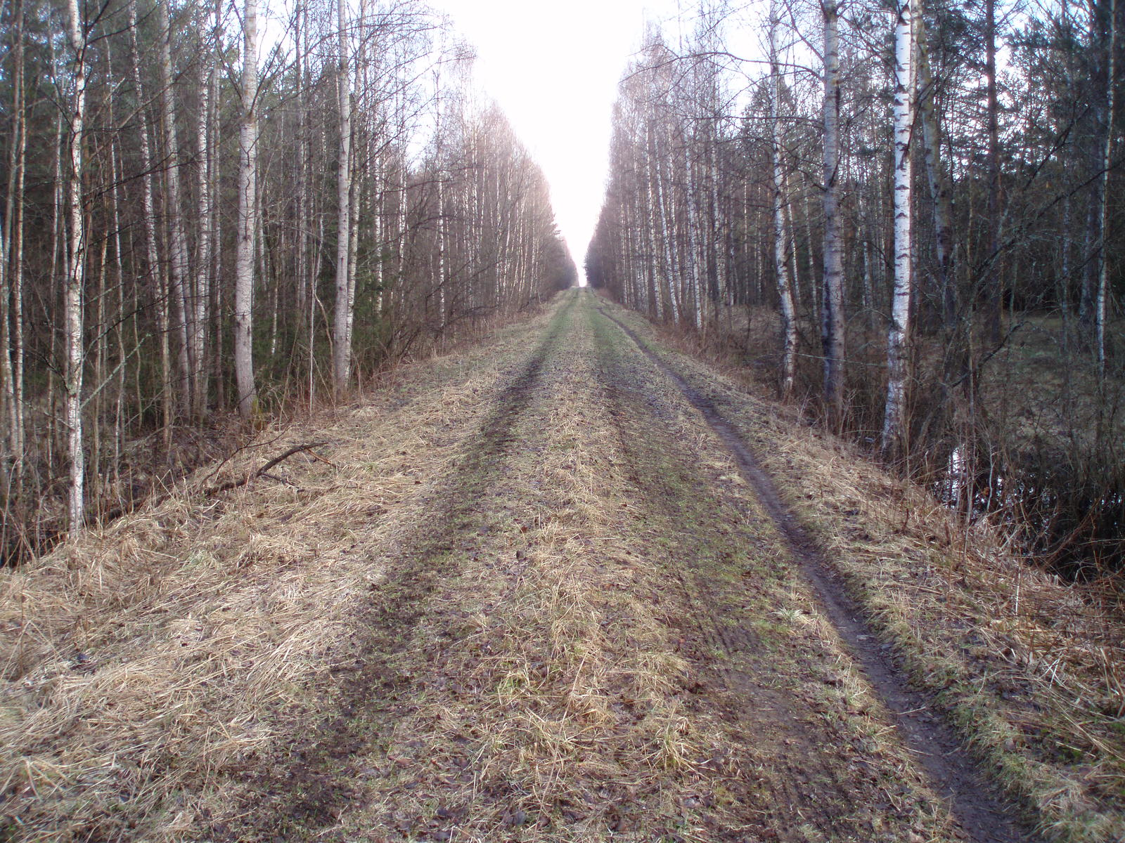 Участок линии в лесу, менее чем в двух километрах севернее переезда. Вид в северном направлении.