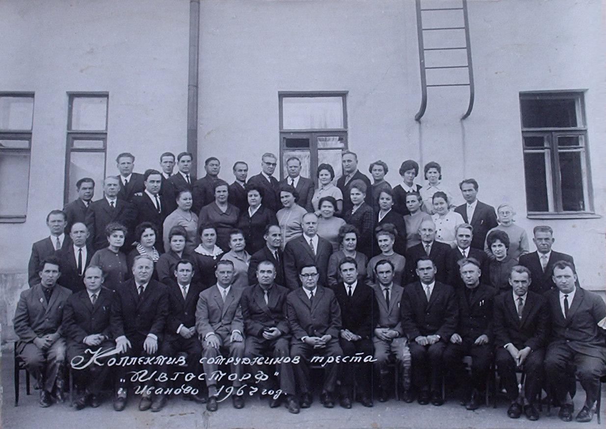 Коллектив сотрудников треста «Ивгосторф», к которому относилось Комсомольское транспортное управление. 1967 год.