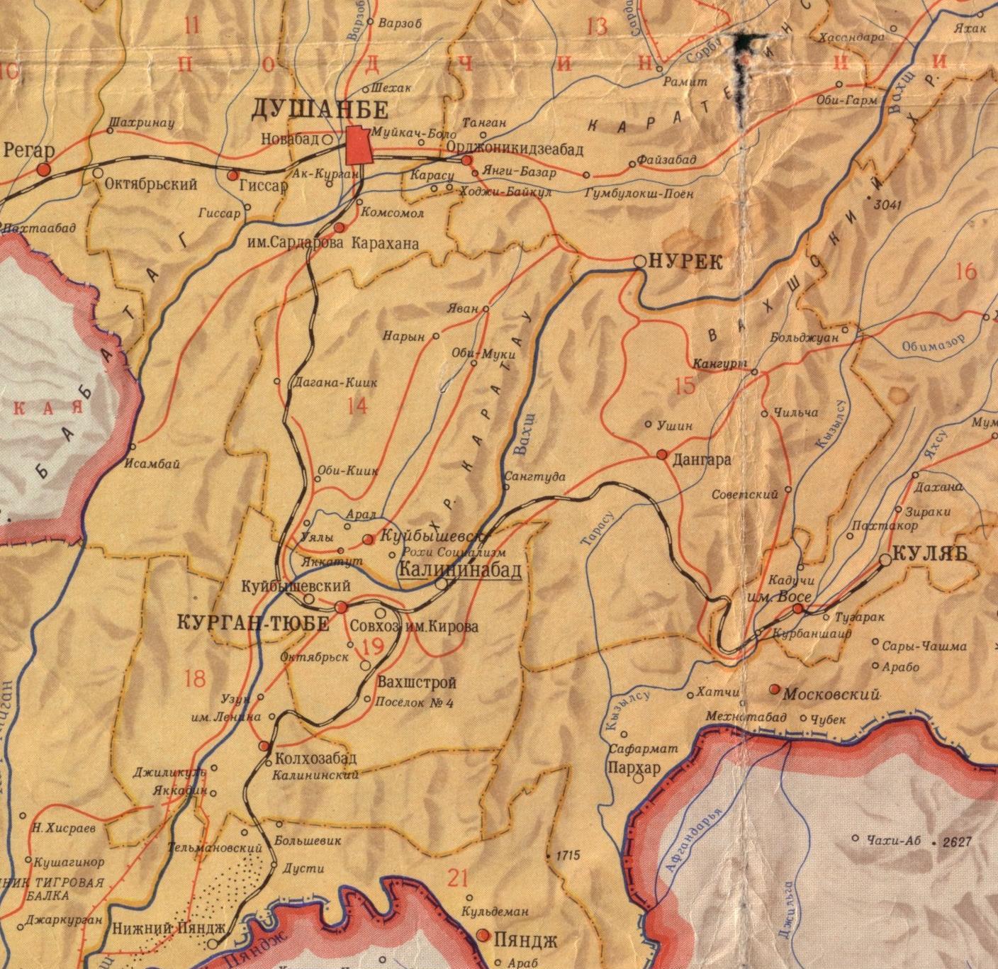 УЗКОКОЛЕЙНАЯ ЖЕЛЕЗНАЯ ДОРОГА ДУШАНБЕ — КУРГАН-ТЮБЕ — КУЛЯБ, НИЖНИЙ ПЯНДЖ СХЕМЫ И ТОПОГРАФИЧЕСКИЕ КАРТЫ