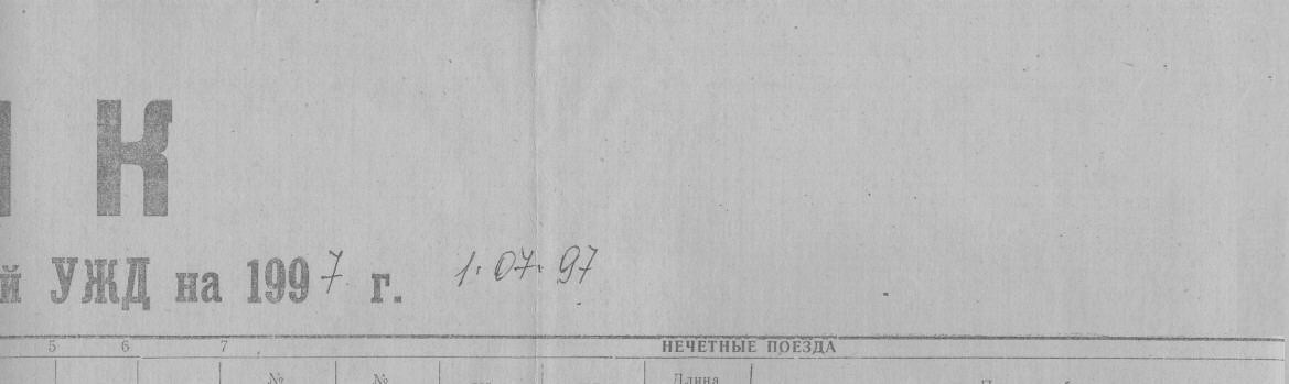 Фрагмент листа графика исполненного движения поездов за 01.07.1997 года.