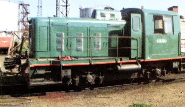 Ширококолейный тепловоз ТГэ-027 на территории Оренбургского шпалопропиточного завода.