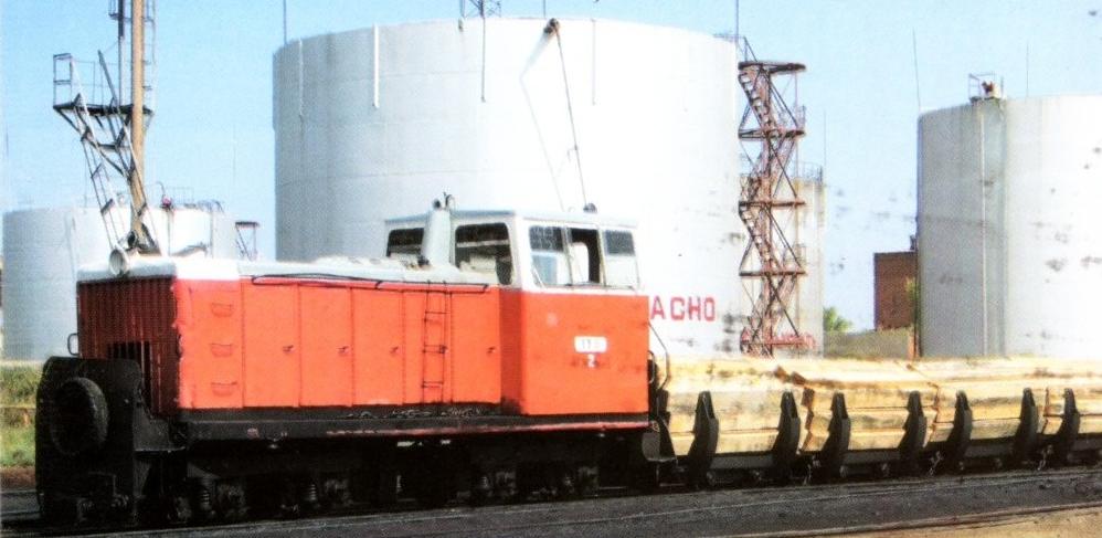 Ширококолейный тепловоз ТГК2 на территории Оренбургского шпалопропиточного завода.