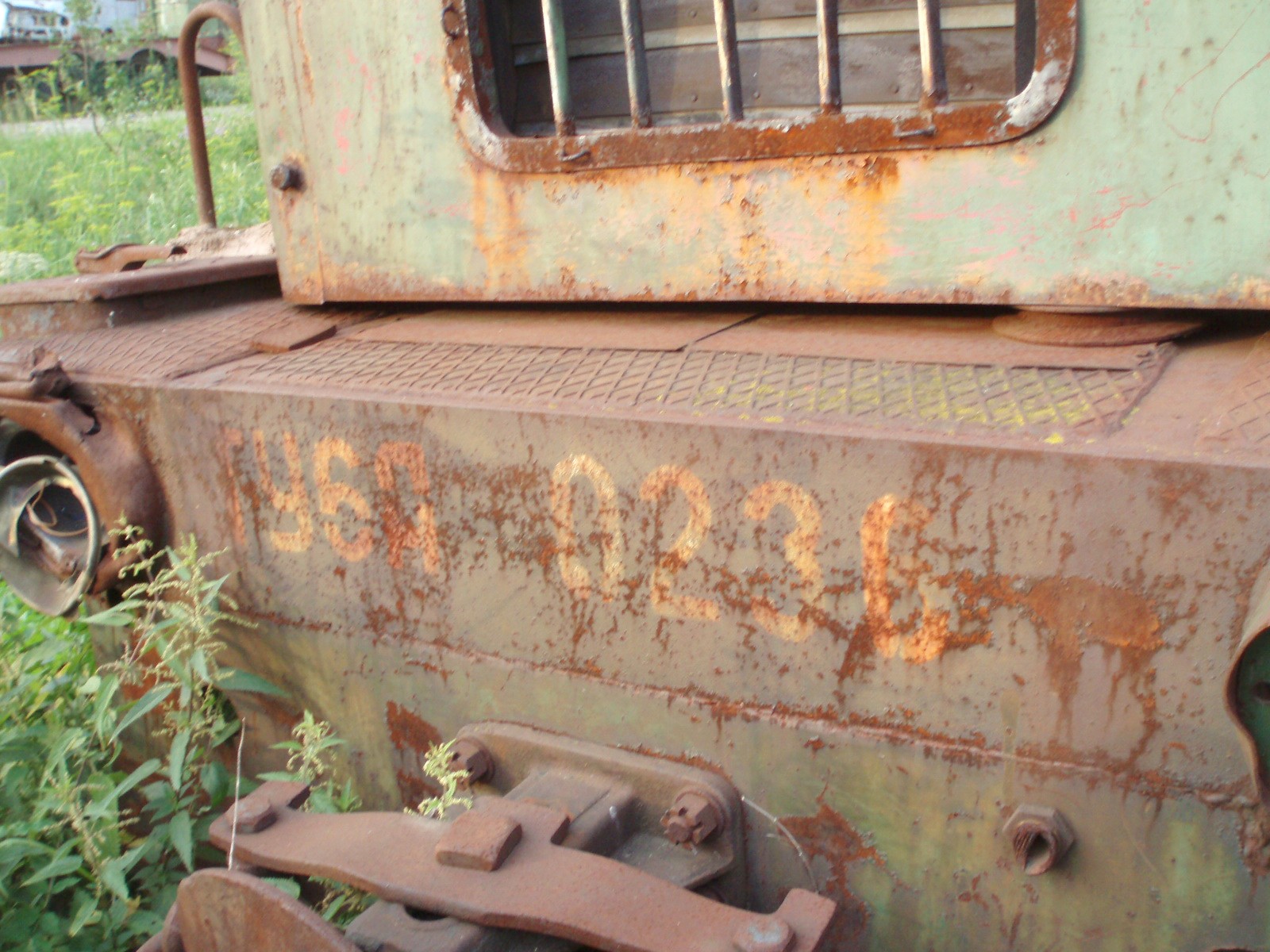 Тепловоз ТУ6А-0236 на территории завода «Брянскстроммаш» — обозначение номера.