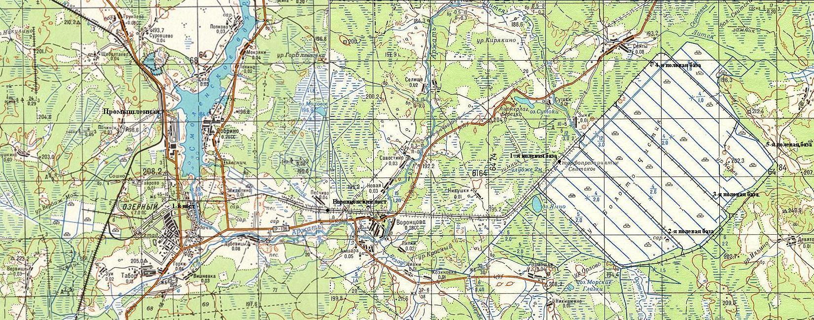 19 мая 1999 года я прошёл пешком по недействующей железной дороге широкой колеи от Кривой (Жарковский район Тверской области) до станции Промышленная (Смоленская ГРЭС), и далее по действующему участку до станции Сошно. На следующий день, 20 мая, был предпринят обход окрестностей посёлка Озёрный в поисках следов узкоколейной железной дороги. К сожалению, на тот момент их оставалось немного. Рельсы повсеместно были сняты, иногда попадались уцелевшие железобетонные шпалы, кабины тепловозов.