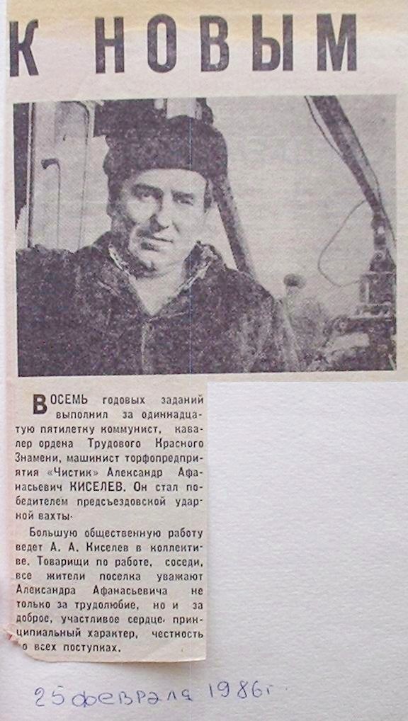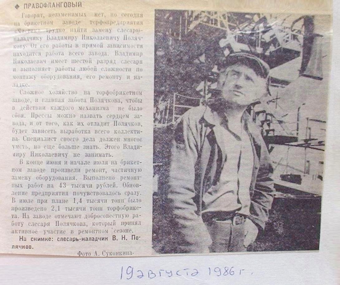 Материал, опубликованный в руднянской районной газете «Заветы Ильича», номер от 19 августа 1986 года.