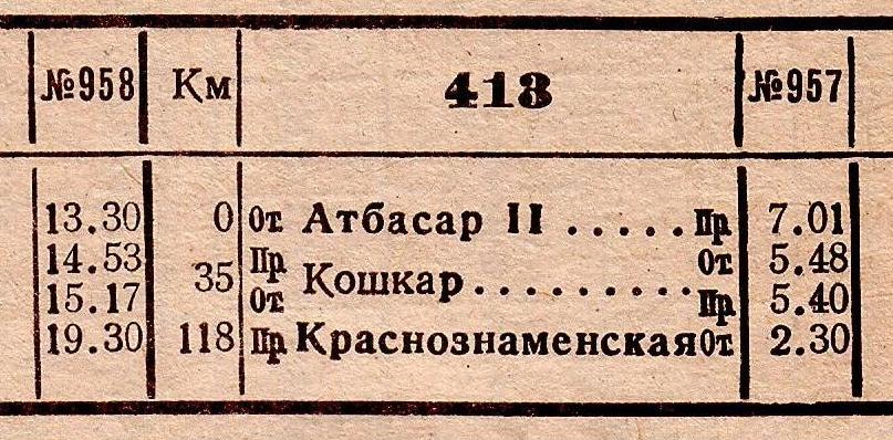 Расписание движения грузопассажирского поезда сообщением Атбасар II - Краснознаменская на 1981–1982 гг.