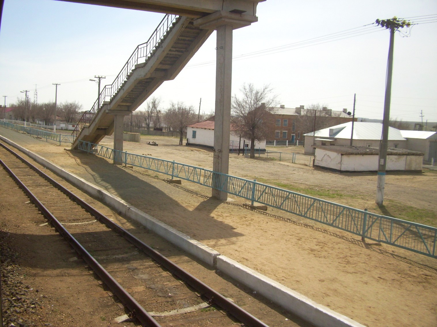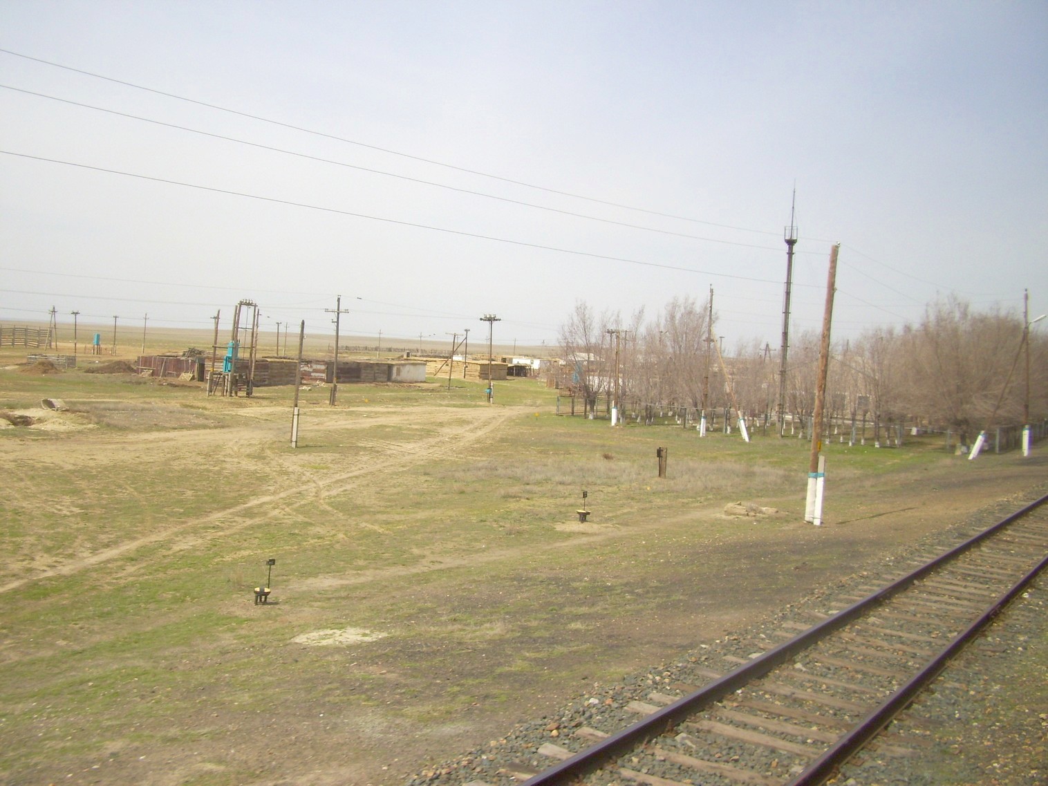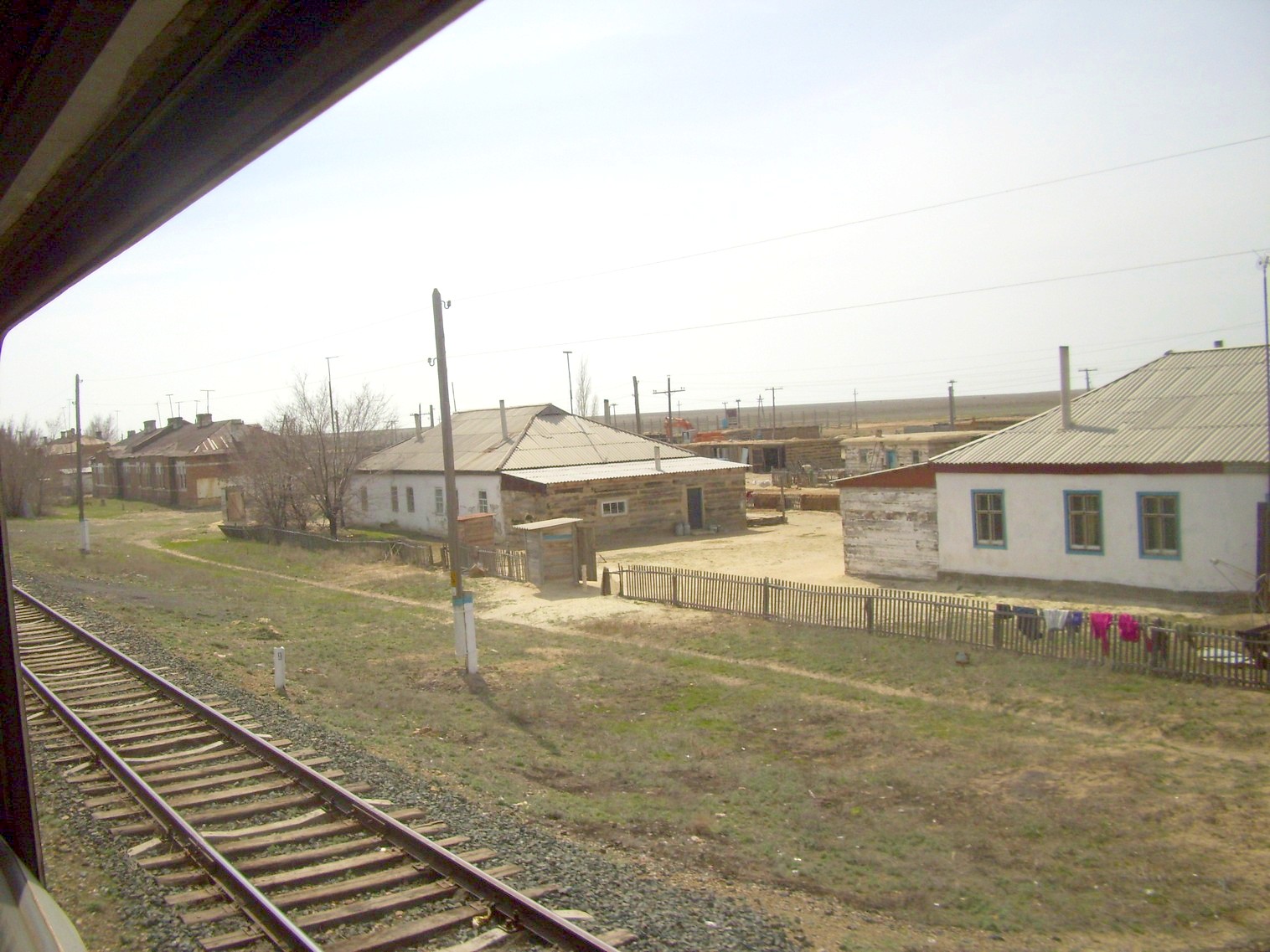 Станция Тосьбулак. Вид из скорого поезда «Акжайык» сообщением Гурьев — Алма-Ата.