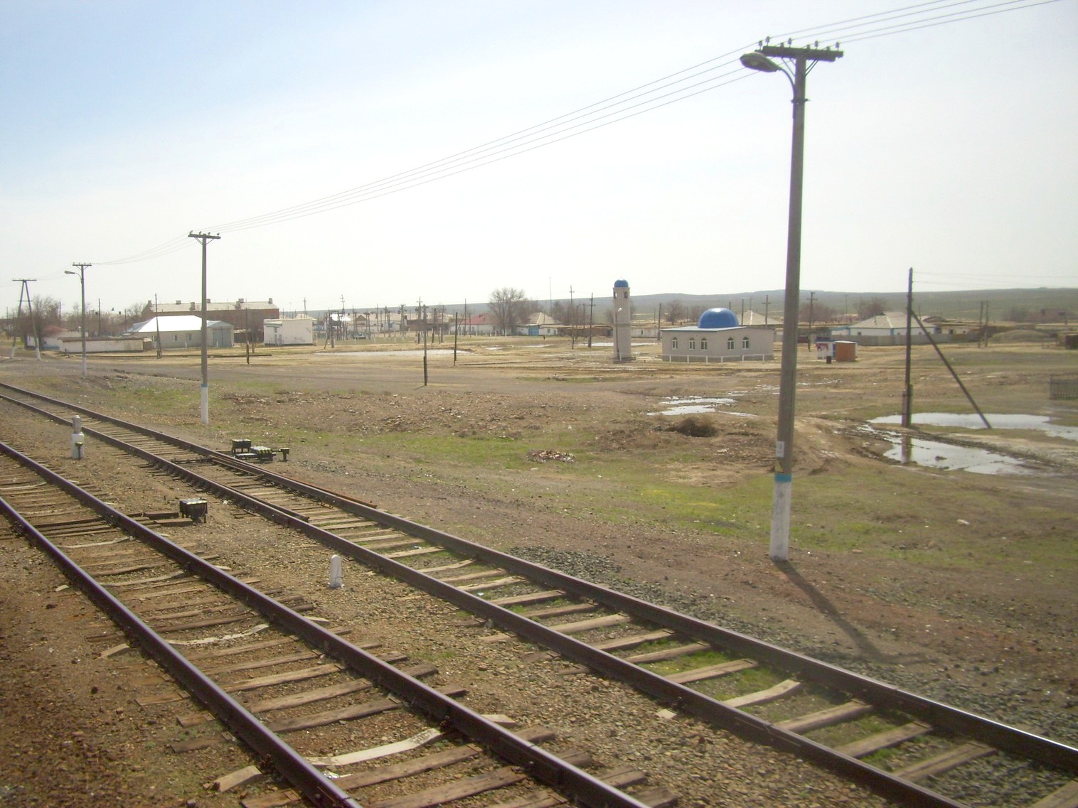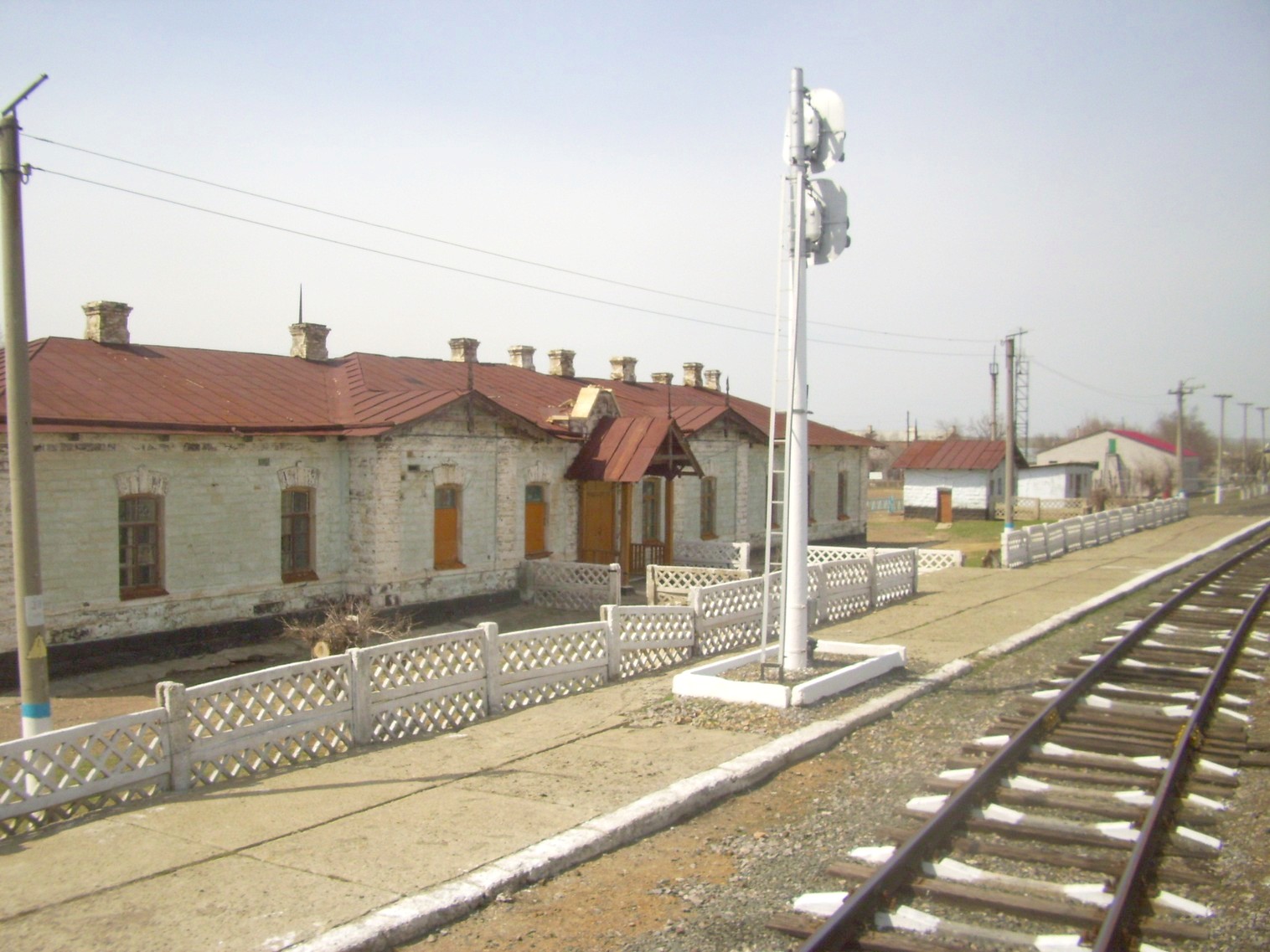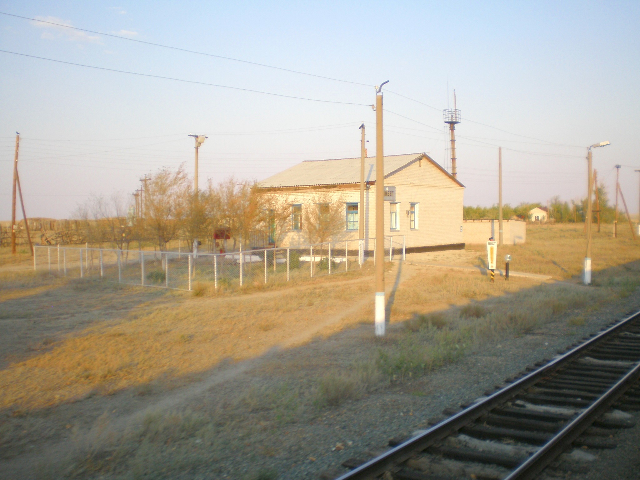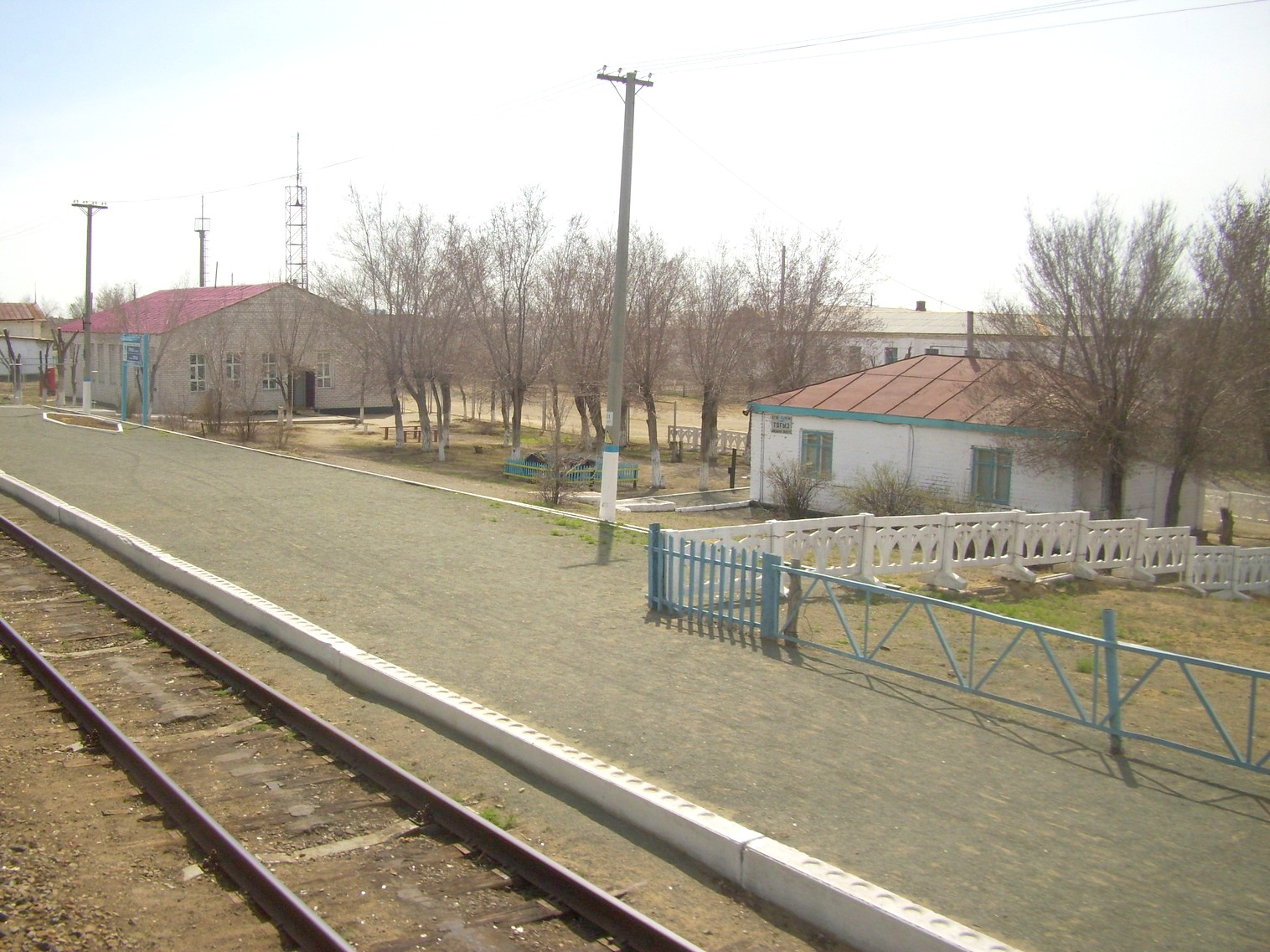 Станция Тосьбулак. Вид из скорого поезда «Акжайык» сообщением Гурьев — Алма-Ата.