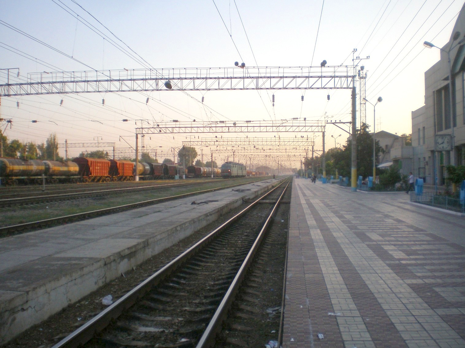 Станция Джамбул. Вид в восточном направлении с переходного моста, расположенного вблизи вокзала.