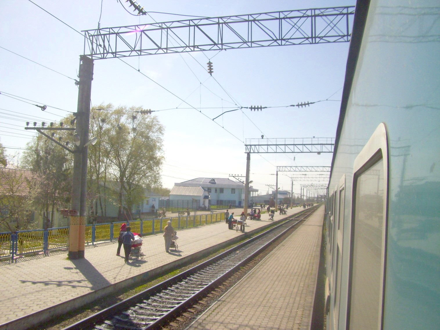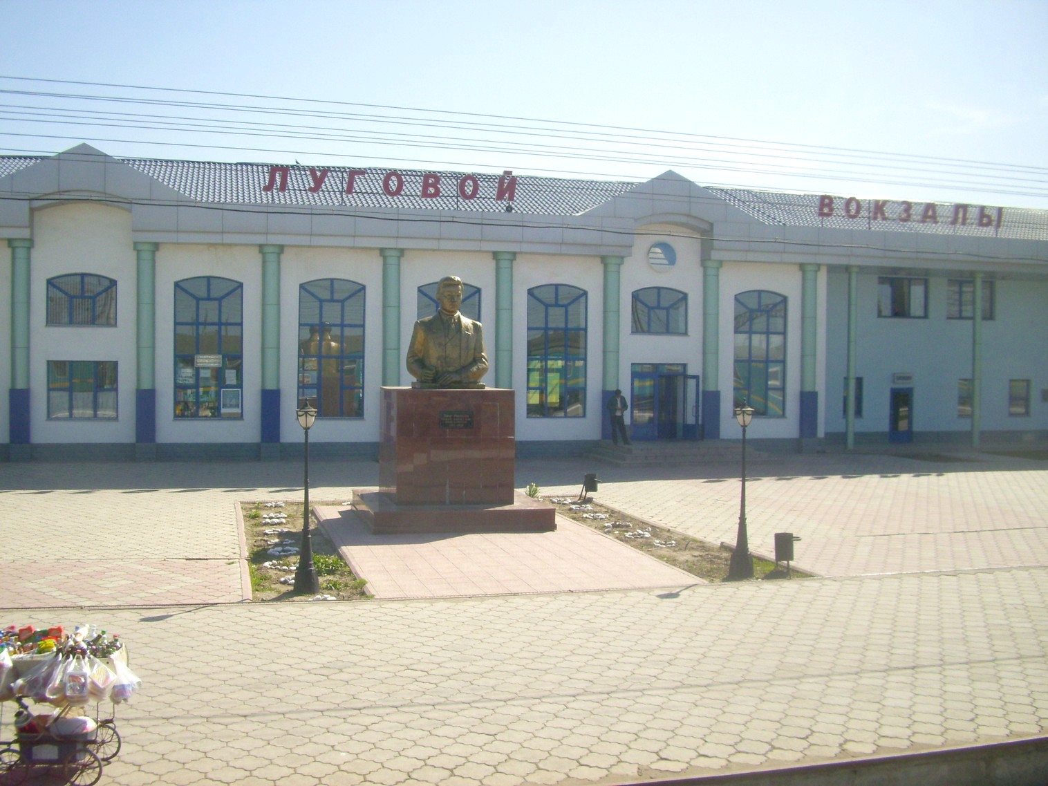 Впереди — станция Луговая. Вид из поезда сообщением Гурьев — Алма-Ата в северо-восточном направлении.