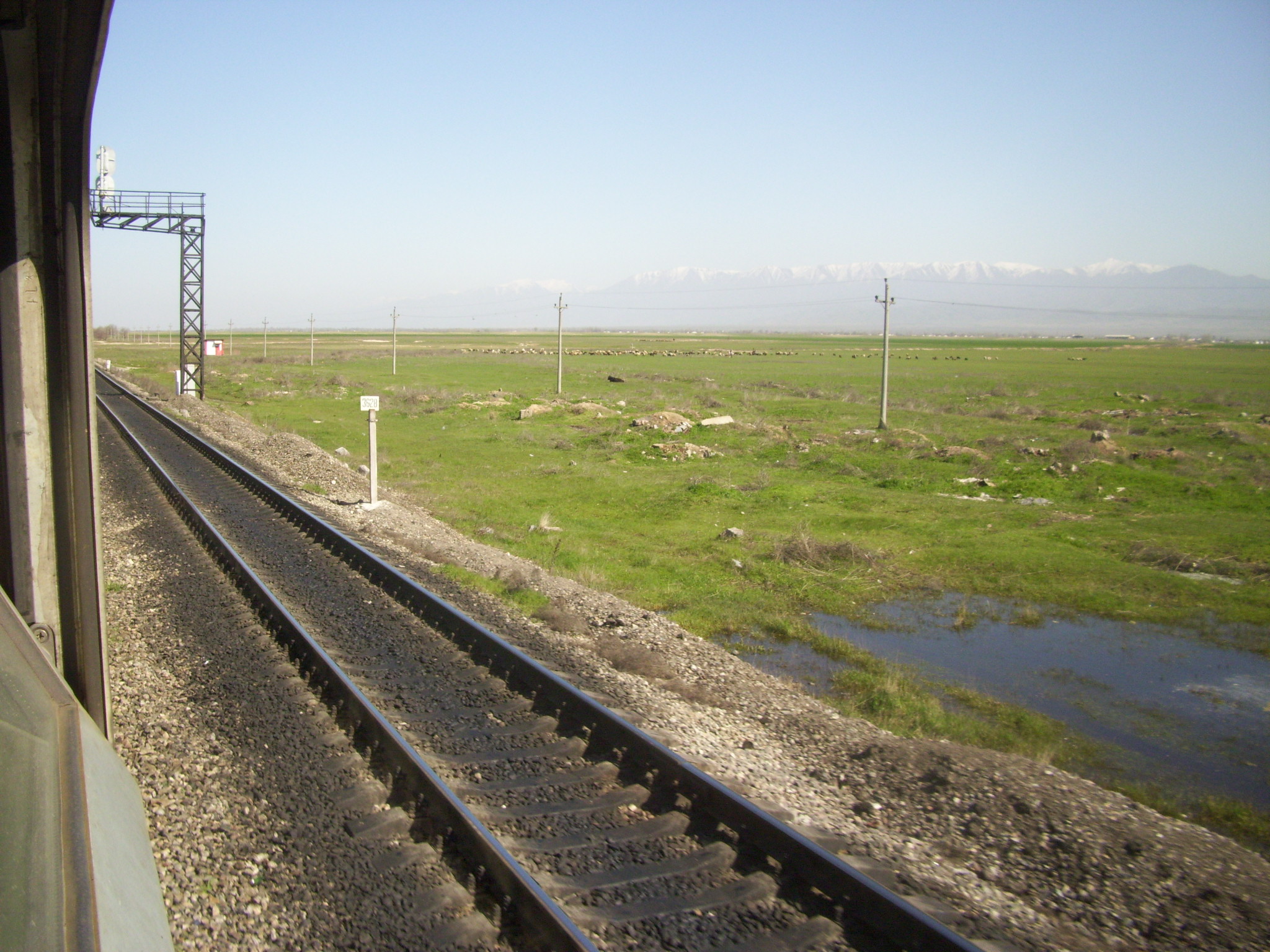 К востоку от станции Луговая. Начальный участок линии Луговая — Бишкек — Рыбачье.