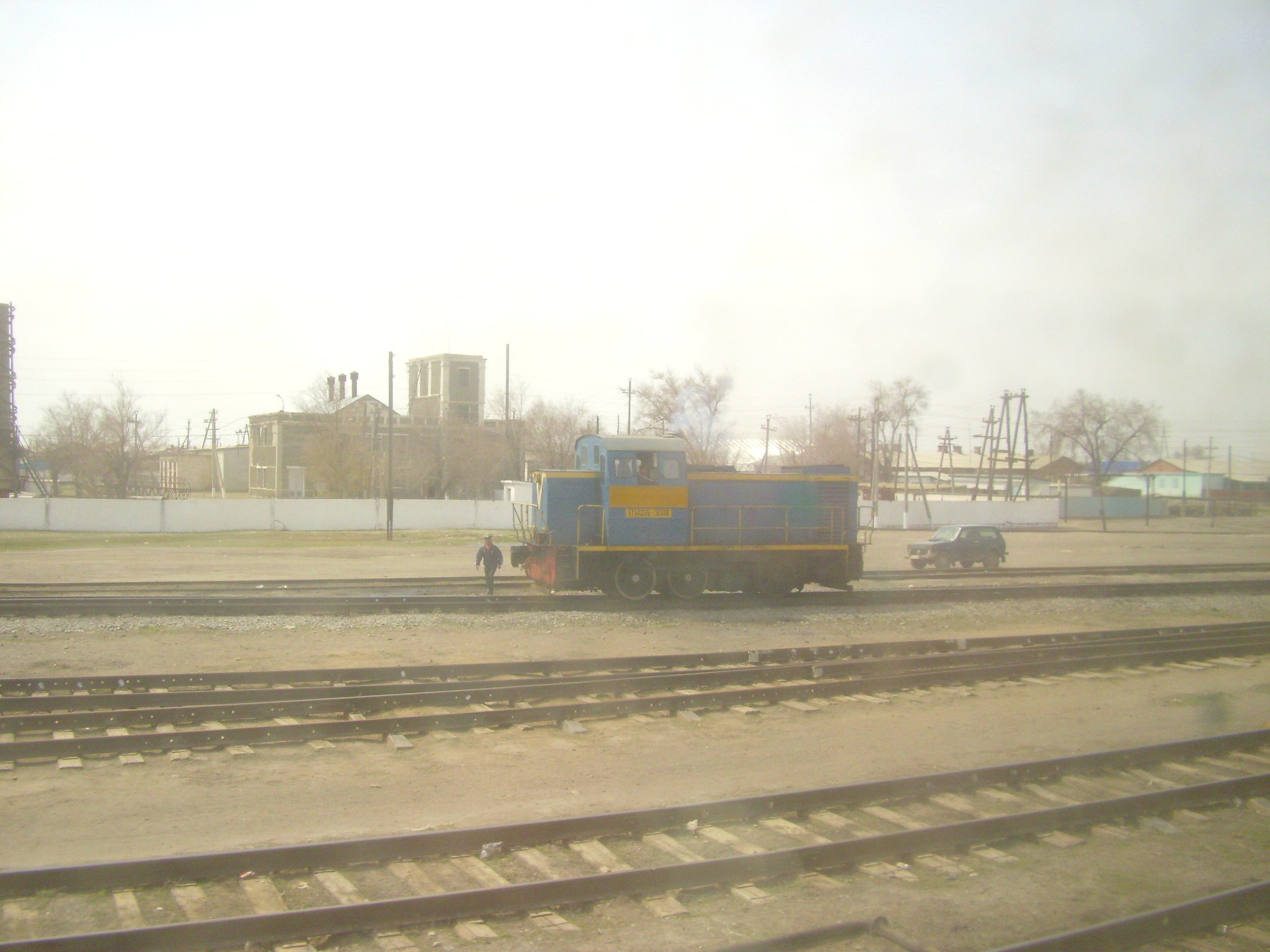 Тепловоз ТГМ23Б-3008 на путях станции Саксаульская, к югу от вокзала.