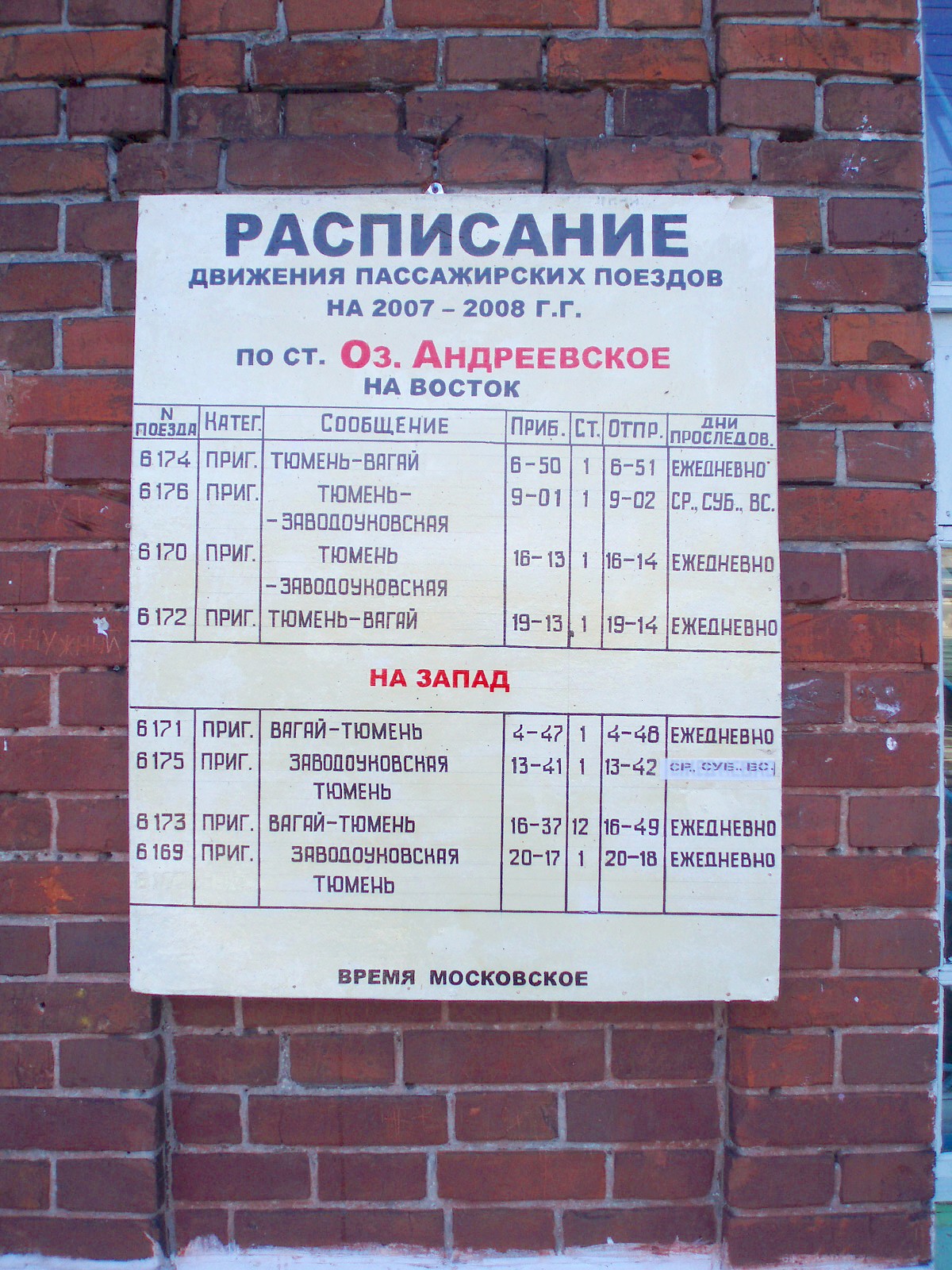 Расписание движения пассажирских поездов по станции Озеро Андреевское.