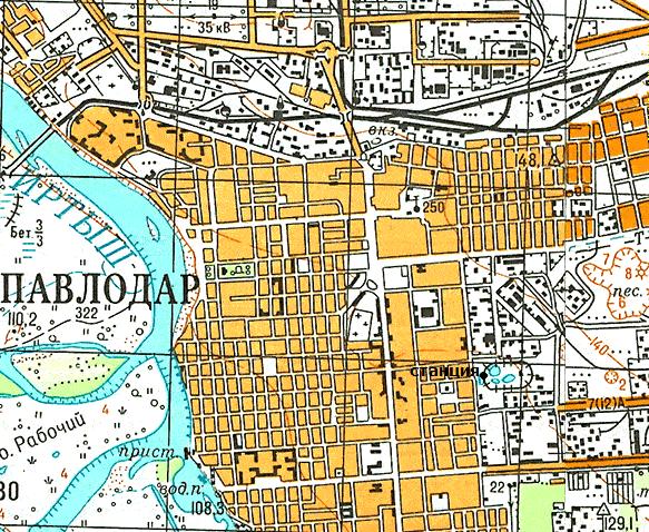 Павлодарская детская железная дорога на топографической карте