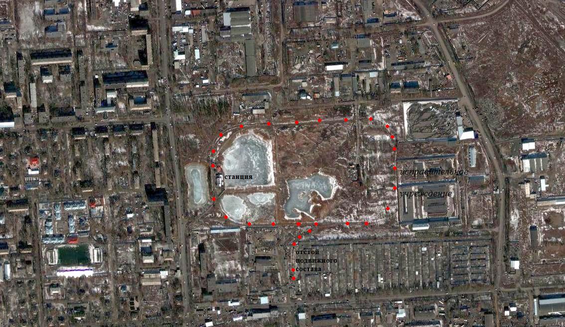 Узкоколейная железная дорога на спутниковом снимке (увеличенный формат).