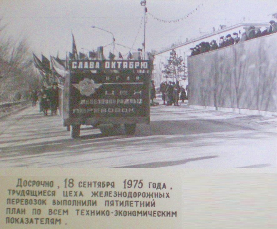 Железнодорожники на праздничной демонстрации. 1975 год.