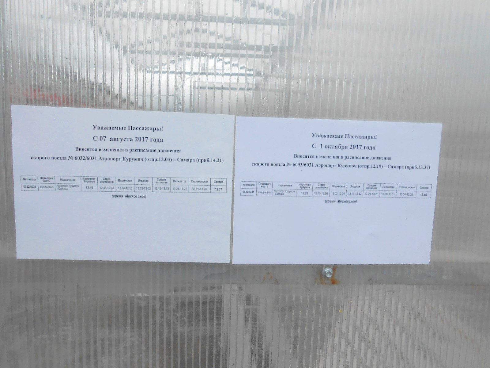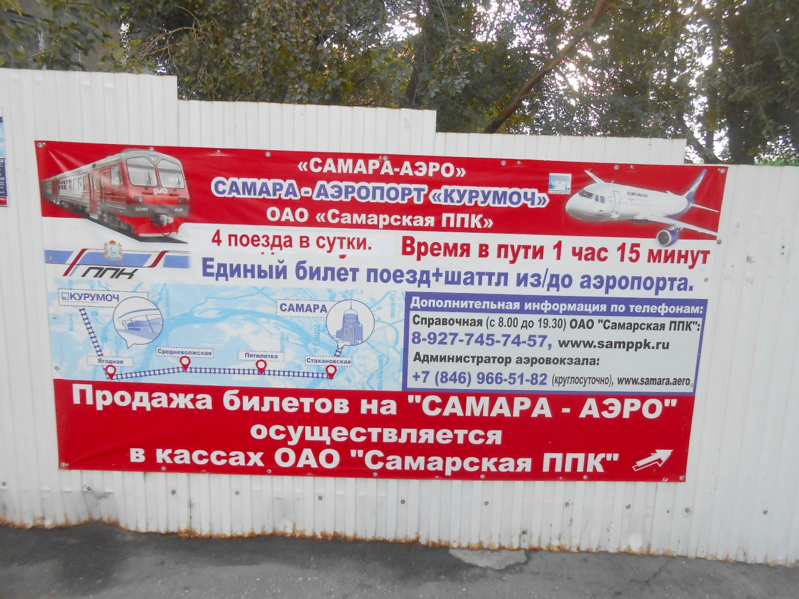 Реклама маршрута на станции Самара. Объём движения уже сократился с четырёх до двух пар в сутки.