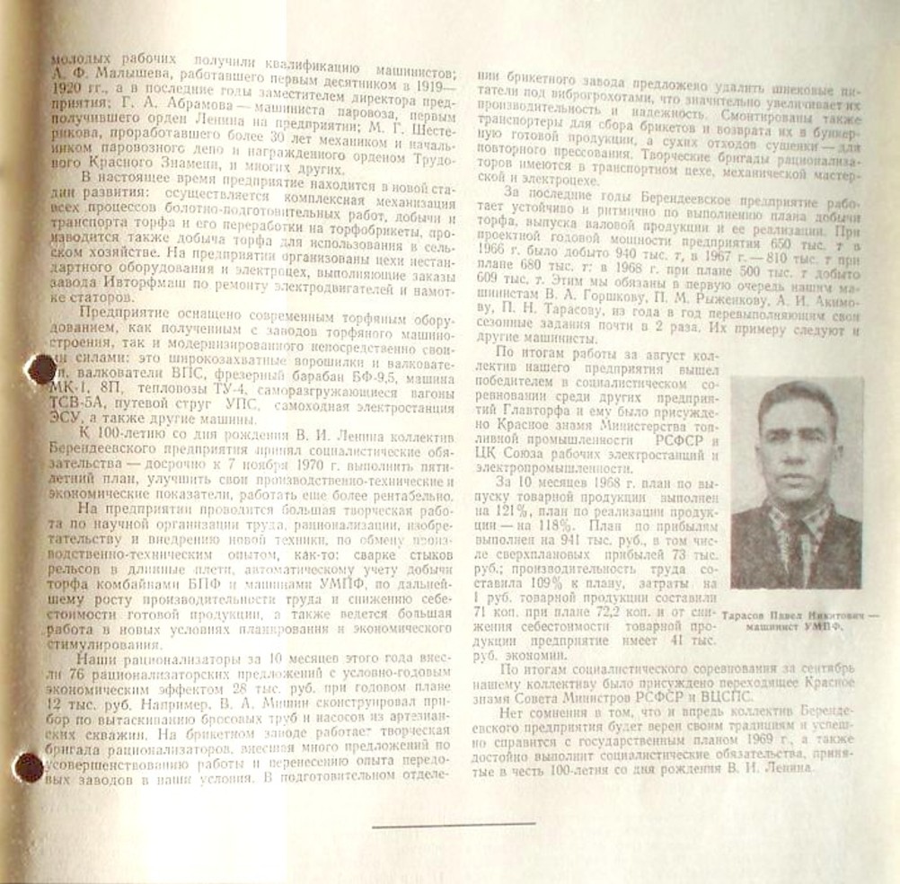 «Из истории развития Берендеевского торфопредприятия» («Торфяная промышленность», 1969 год).