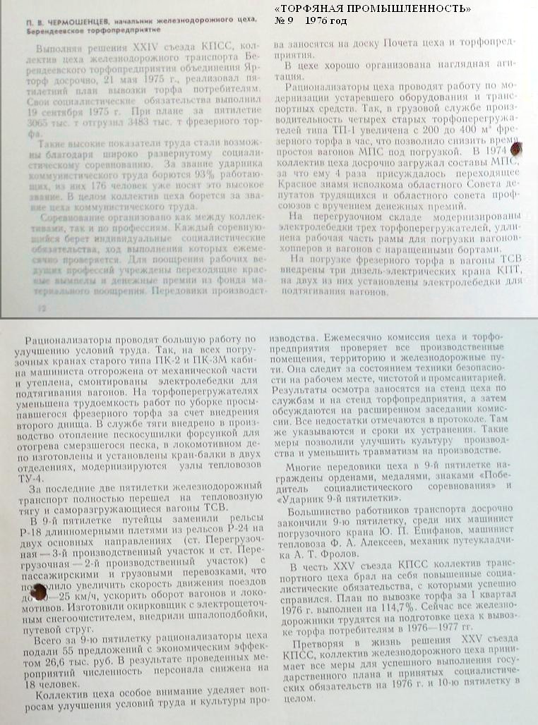 Материал, написанный начальником железнодорожного цеха Берендеевского торфопредприятия