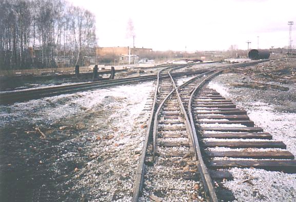 Трёхниточный путь в центре территории шпалозавода (недалеко от того места, где имеется