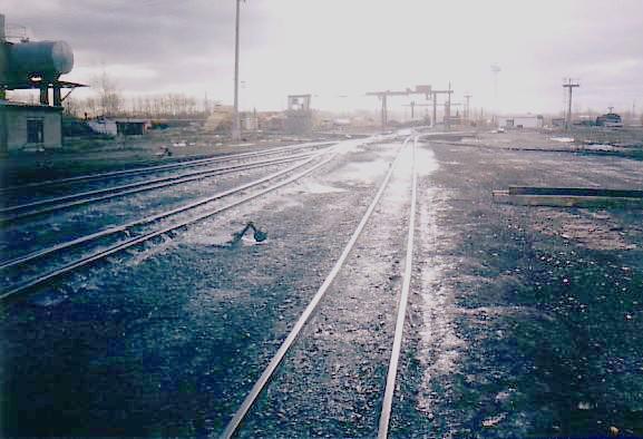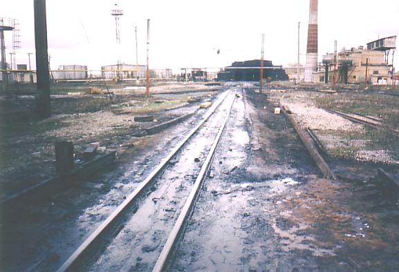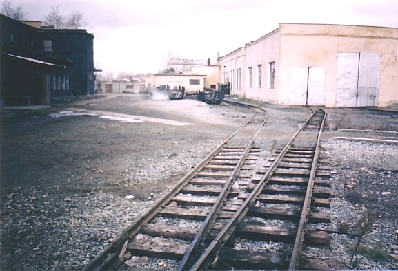 Место выгрузки готовой продукции. Справа стоят вагоны широкой колеи.