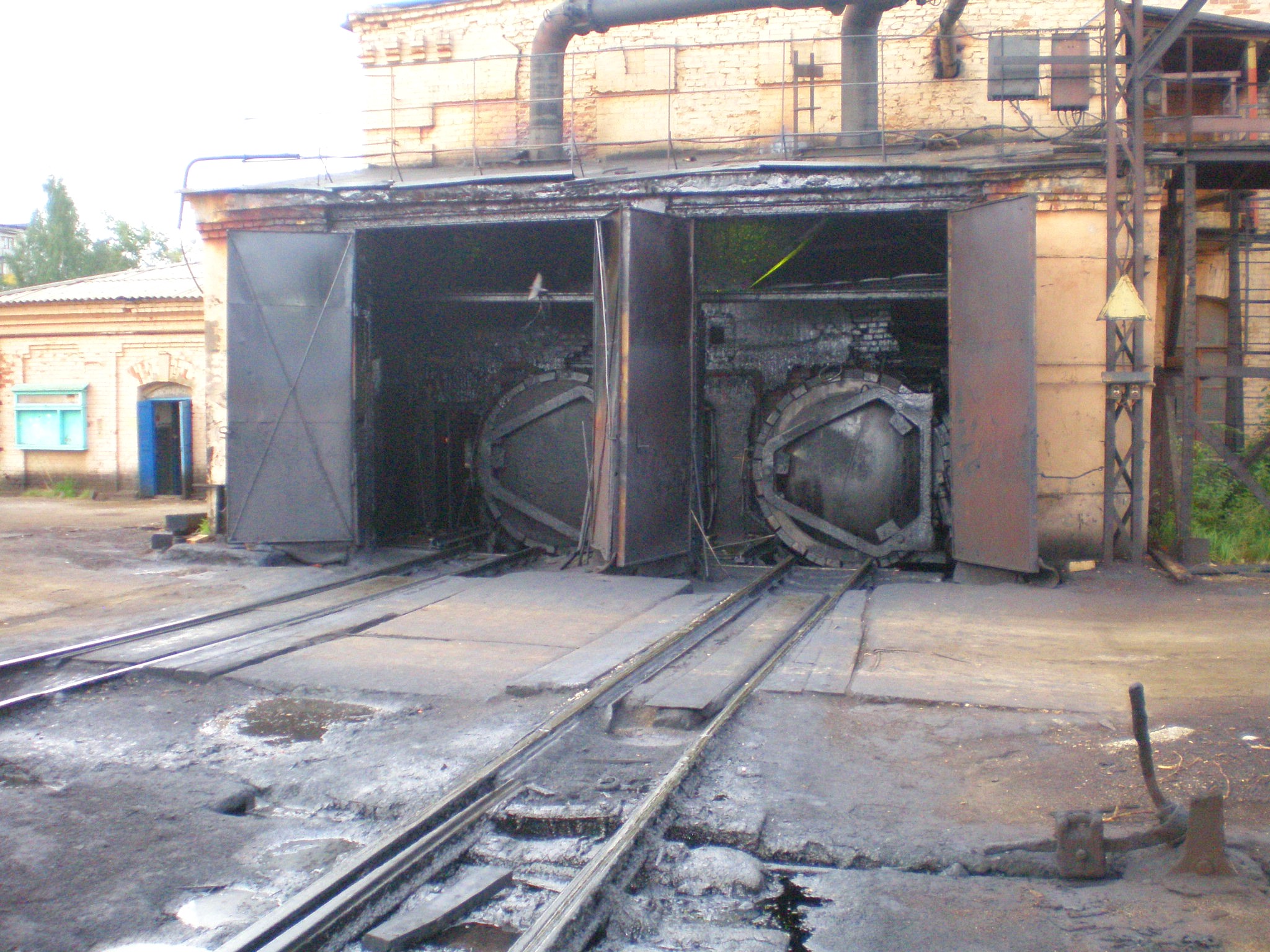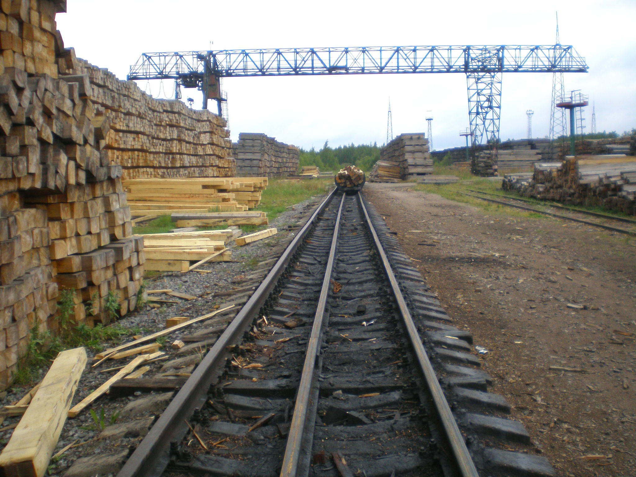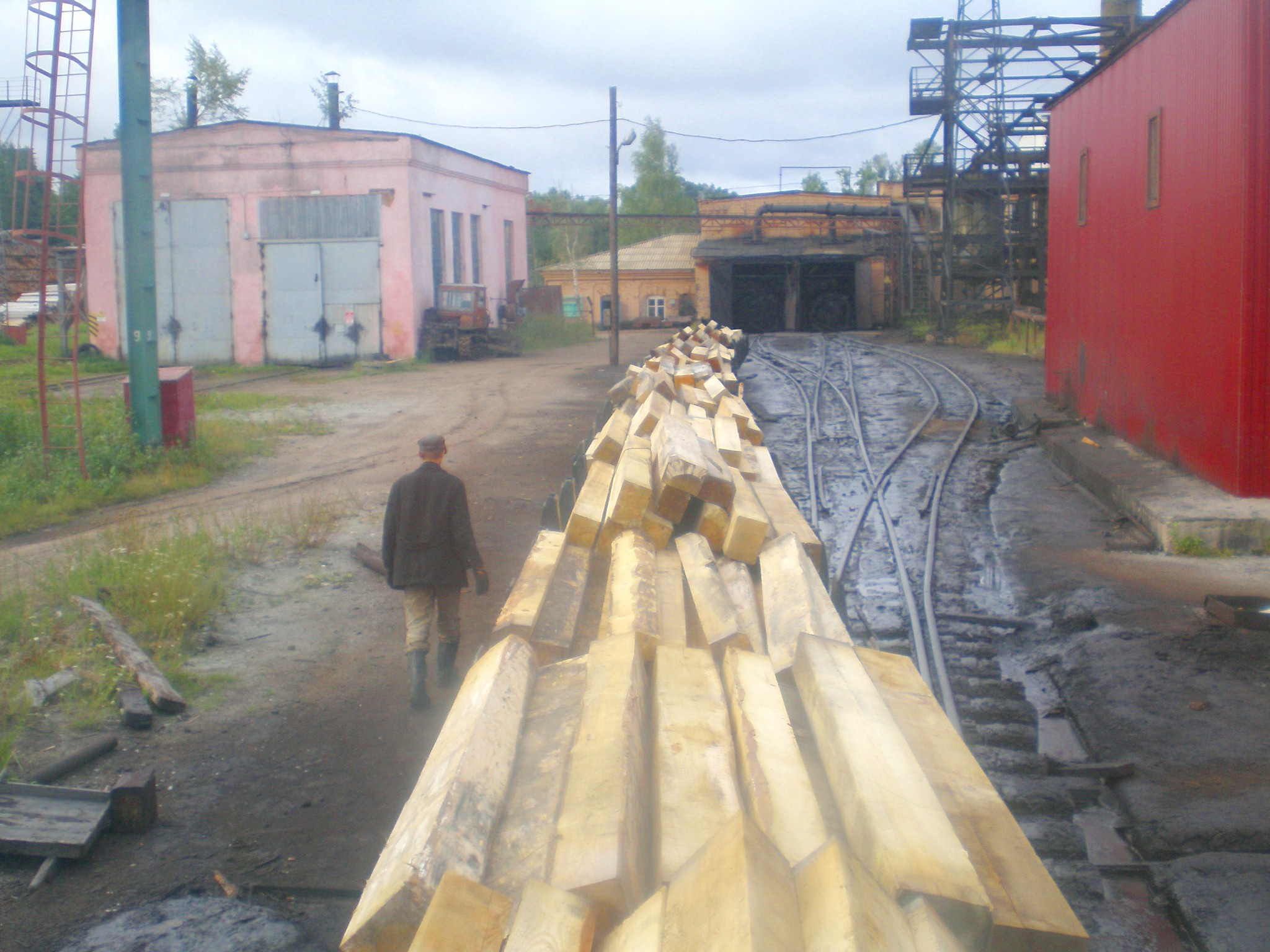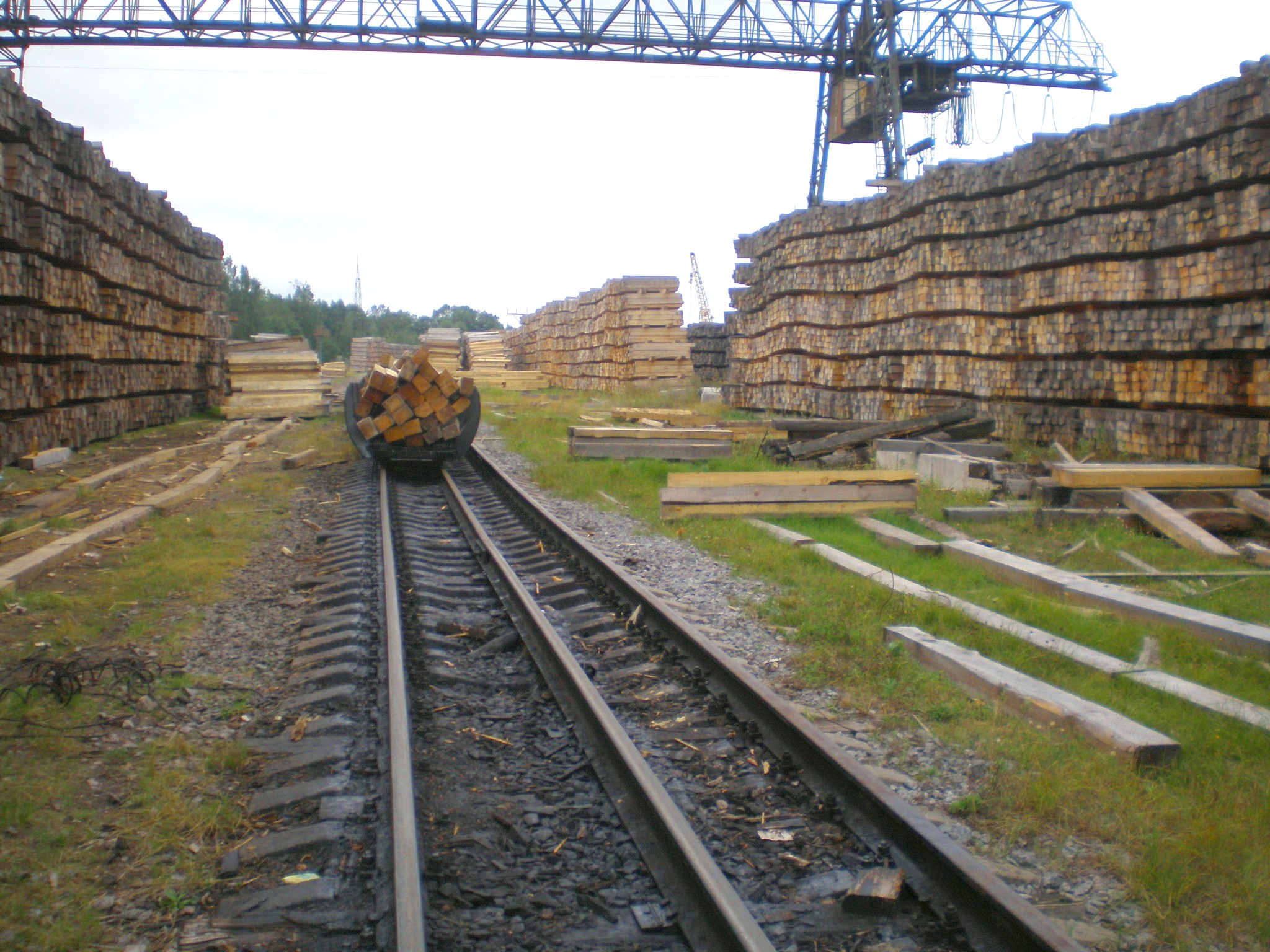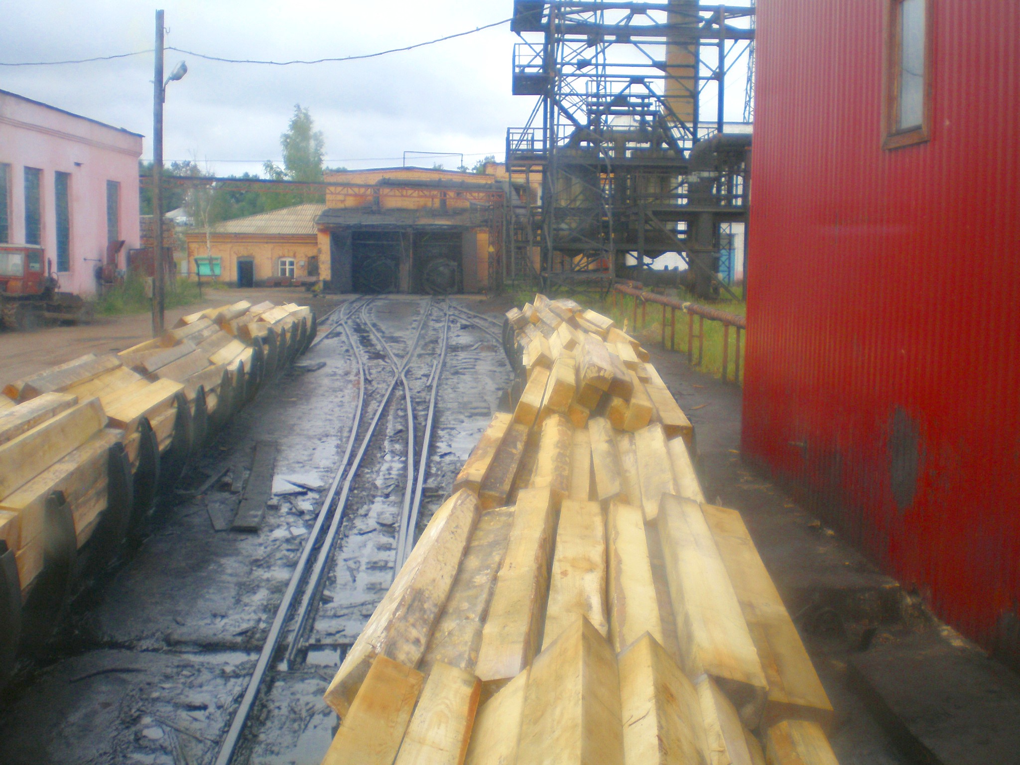 Состав, загруженный белой шпалой, следует к пропиточным цилиндрам.