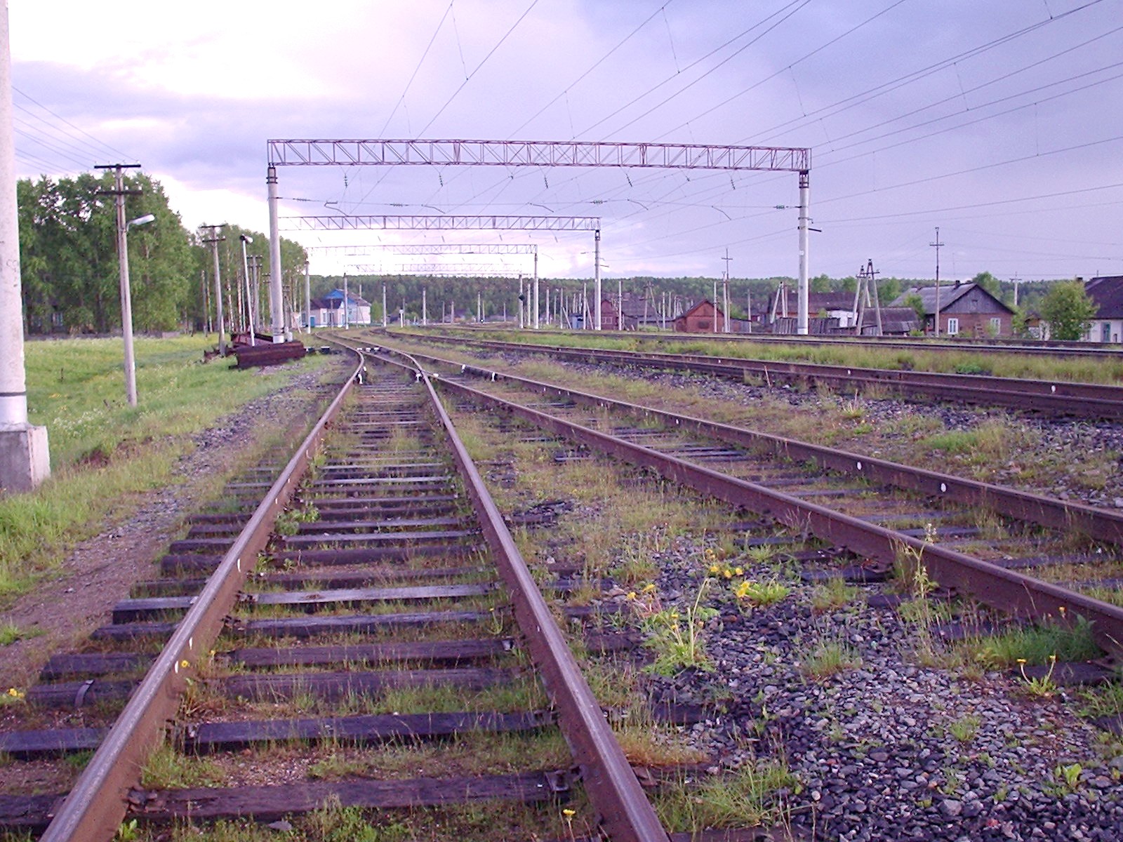 Впереди — примыкание к путям станции Бурачиха. Вид в южном направлении.