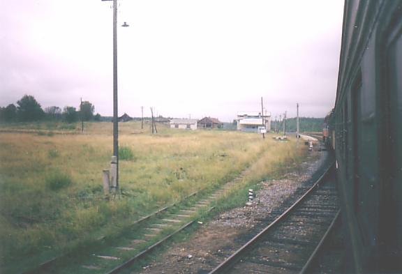 Дни следования поезда на Тёгрозеро мне уже были известны благодаря начальнику станции Юра, который ответил на моё письмо-запрос. Оставалось найти пункт его отправления. Путь в сторону Тёгрозера отходит к западу от вокзала. Пройдя по нему около ста метров, обнаруживаю небольшую бетонную платформу без всяких павильонов или табличек. Но это было не всё — чуть дальше располагалась «станция примыкания» с несколькими путями и небольшими деревянными зданиями. Как оказалось, это станция «1-й километр».