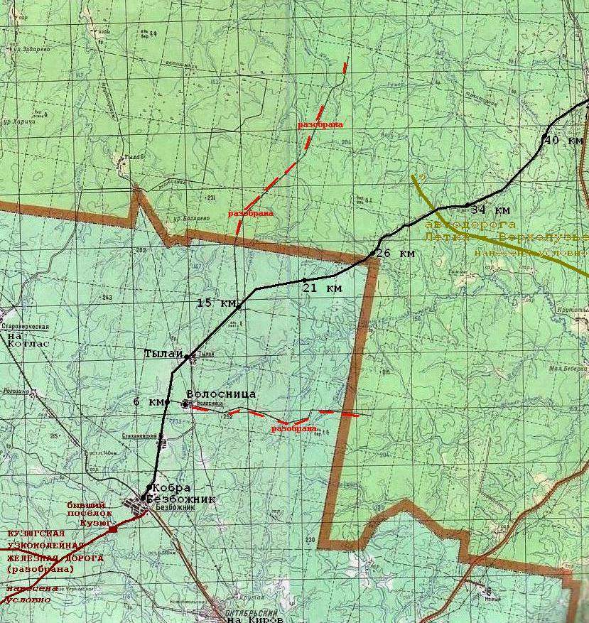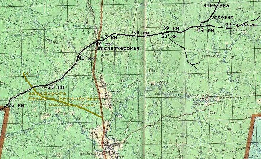 Кобринская узкоколейная железная дорога (южная часть). За основу взята топографическая карта