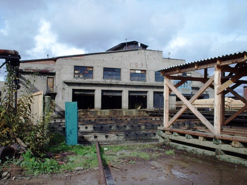 Пути узкой колеи, справа — крановый рельс. Вид от пропиточного цеха в южном направлении.