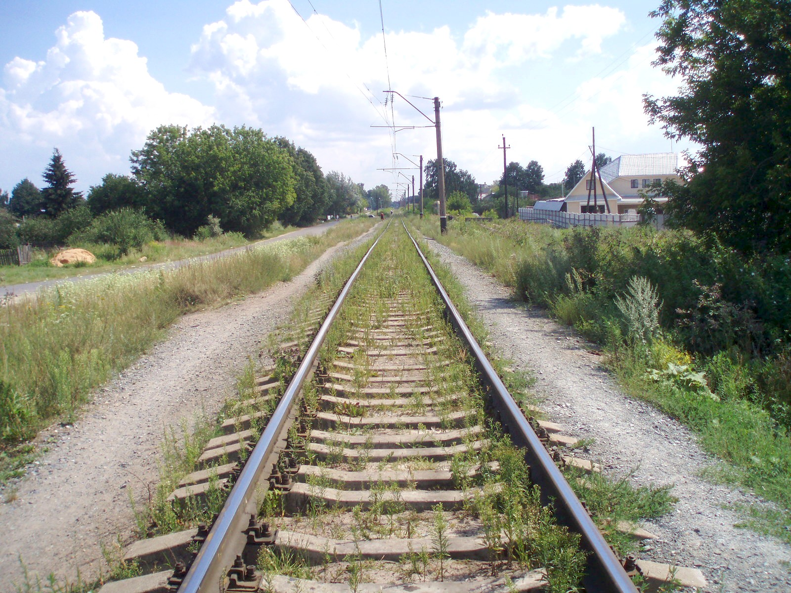 Впереди — остановочный пункт Спортивная. Вид в западном направлении.