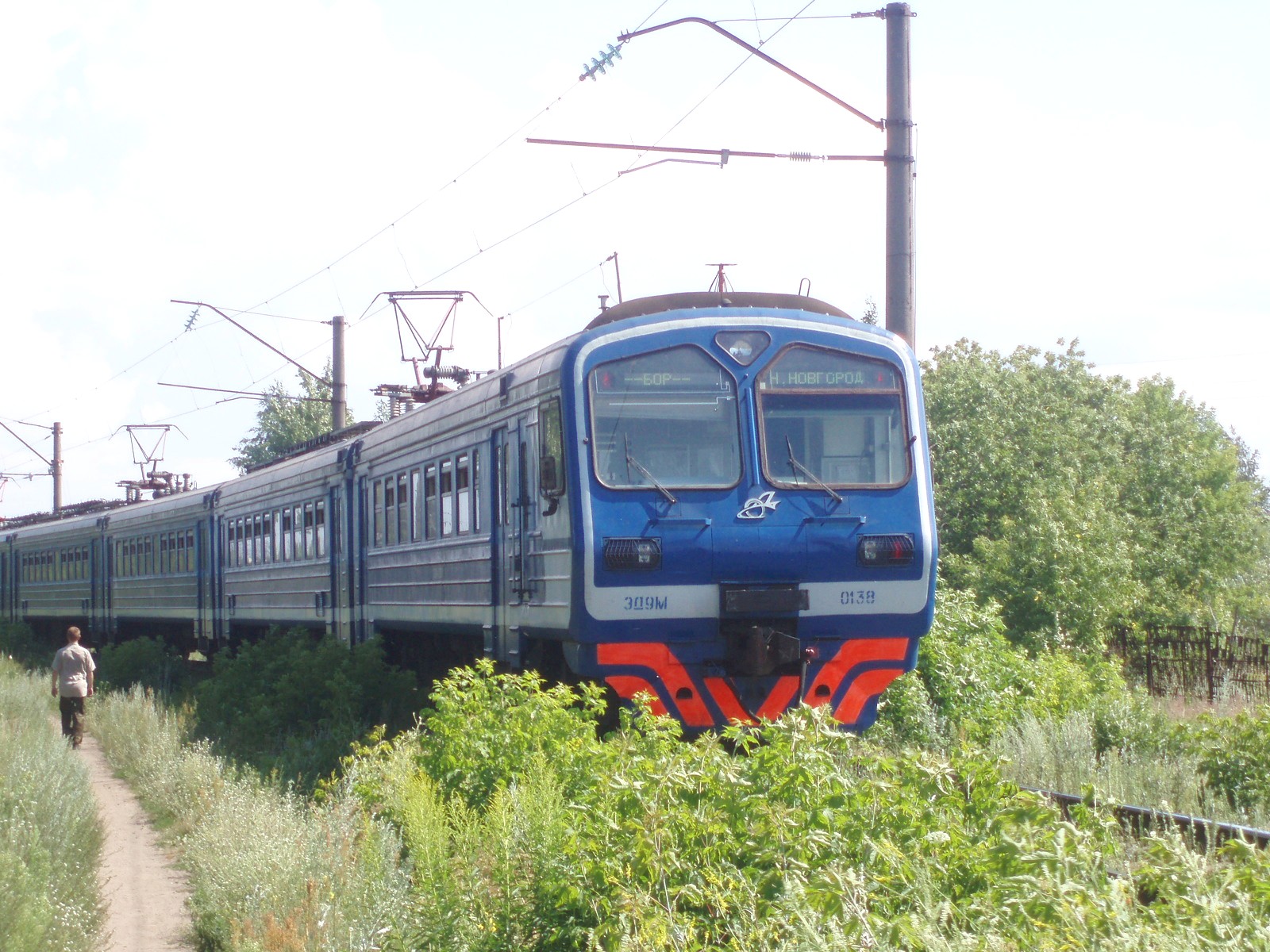 Электропоезд ЭД9М-0138 сообщением Моховые Горы — Горький-Московский у высокой платформы на станции Толоконцево.