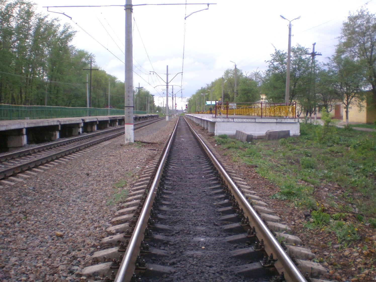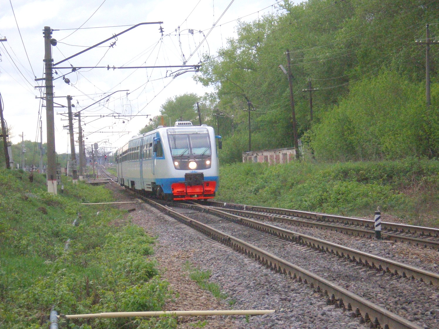 Станция Новомосковская I, вид в северном направлении. Дизель-поезд РА2, следующий