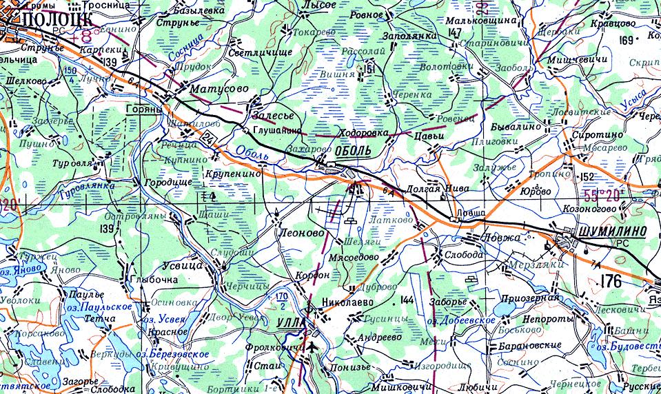 Узкоколейная железная дорога на топографической карте масштаба 1:200 000,