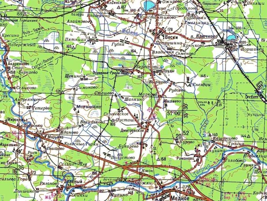 Узкоколейная железная дорога на топографической карте