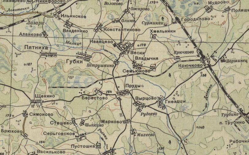 Узкоколейная железная дорога на топографической карте масштаба 1:200 000, изданной ориентировочно в 1941 году.