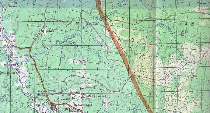 Узкоколейная железная дорога на карте масштаба 1:1 000 000, изданной в 1988 году.
