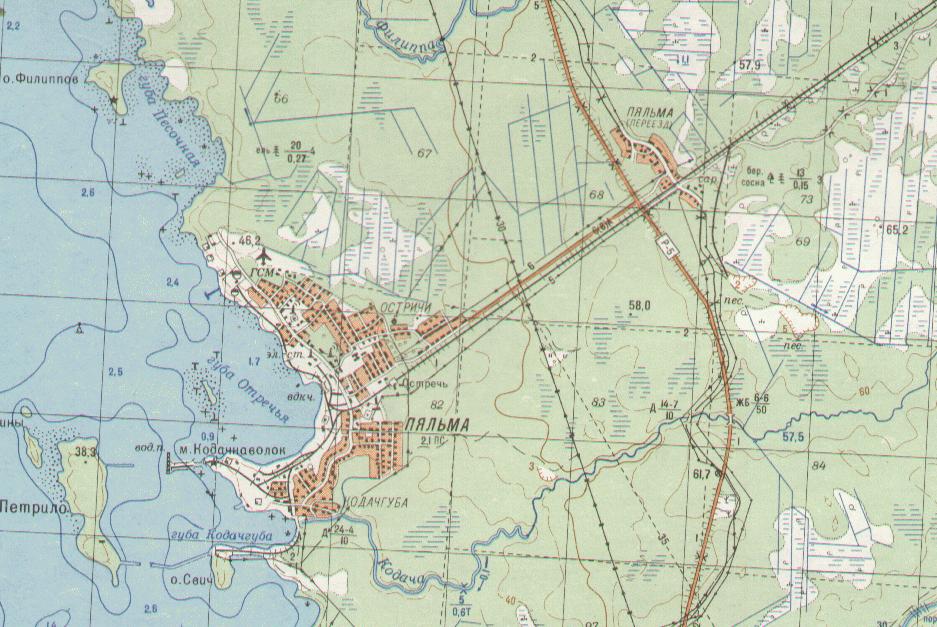 изданной в 1990 году (показаны только окрестности станции Остречь).