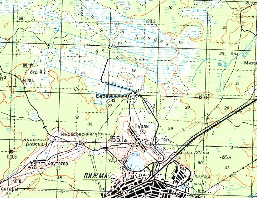 Узкоколейная железная дорога на карте масштаба 1:100 000 (состояние местности на конец 1960-х годов).