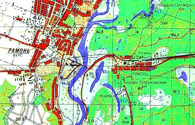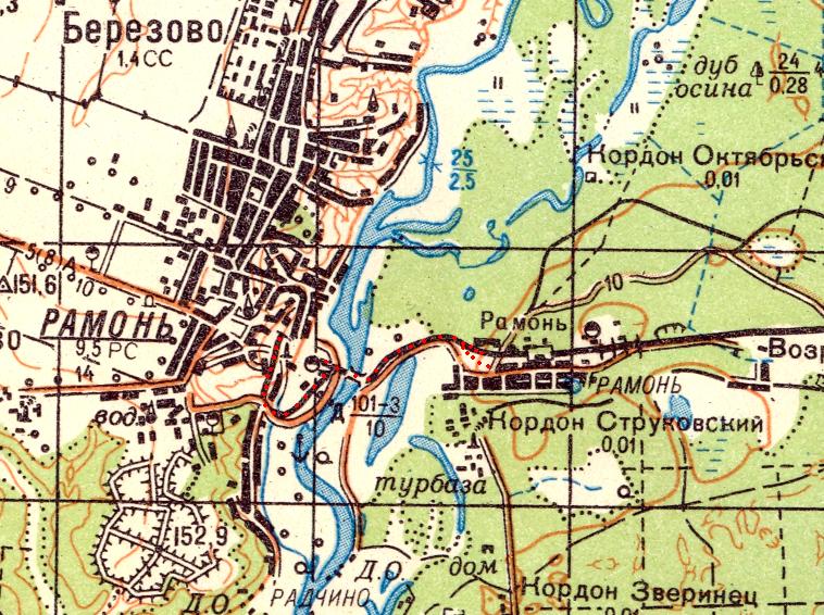 На всех известных автору топографических картах узкоколейная железная дорога Рамонского сахарного комбината показана как железная дорога дорога широкой колеи. К счастью, ошибочно…