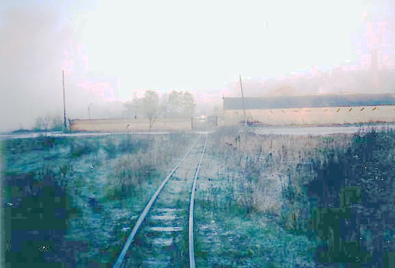 Несколько далее. Участок пути, ведущий на территорию комбината — к депо.