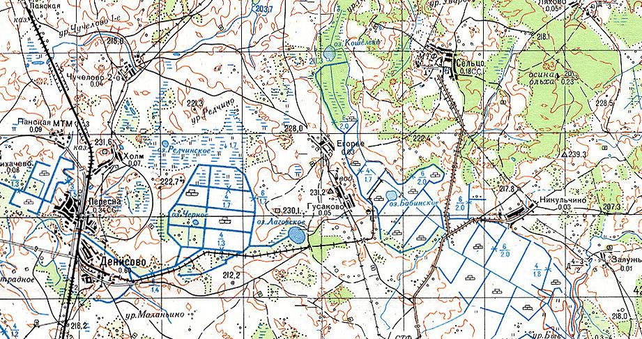 Узкоколейная железная дорога на топографической карте масштаба 1:100 000, изданной в 1983 году.