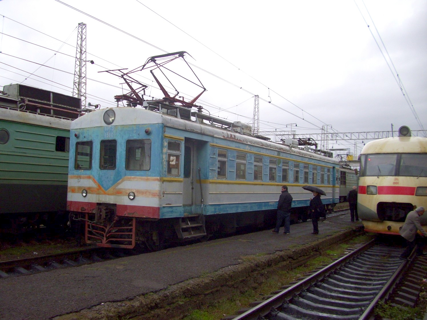 Станция Хашури. На втором пути — вагон электросекции Ср3-1510, на первом пути — электропоезд ЭС-001,