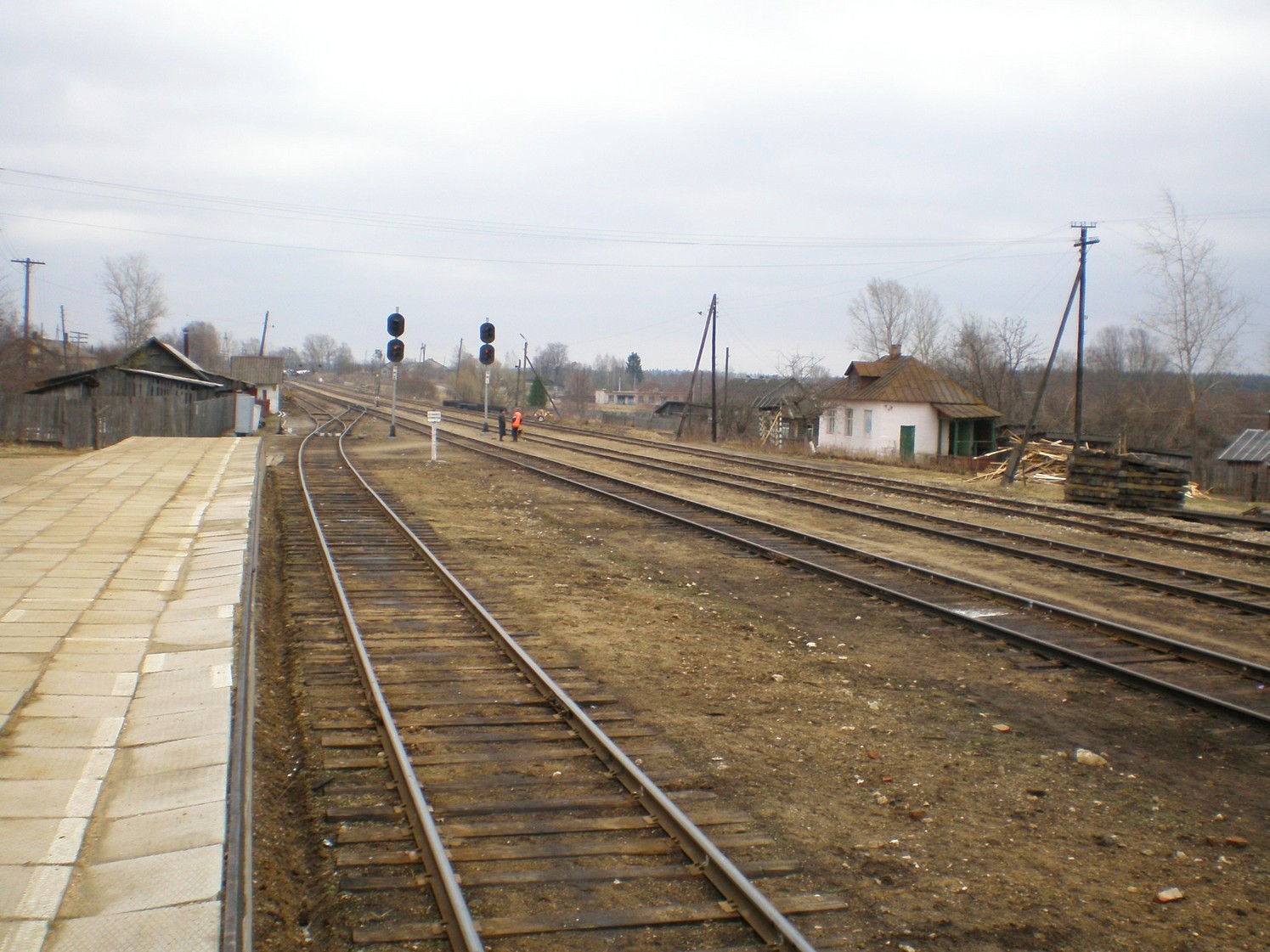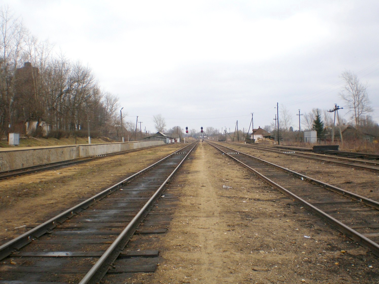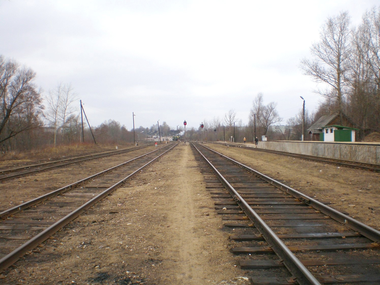 Пути станции Кувшиново. Вид с пассажирской посадочной платформы в западном направлении.