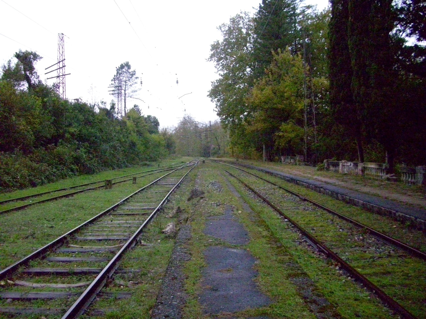 Вид из той же точки в противоположном направлении. Впереди — станция Цхалтубо.