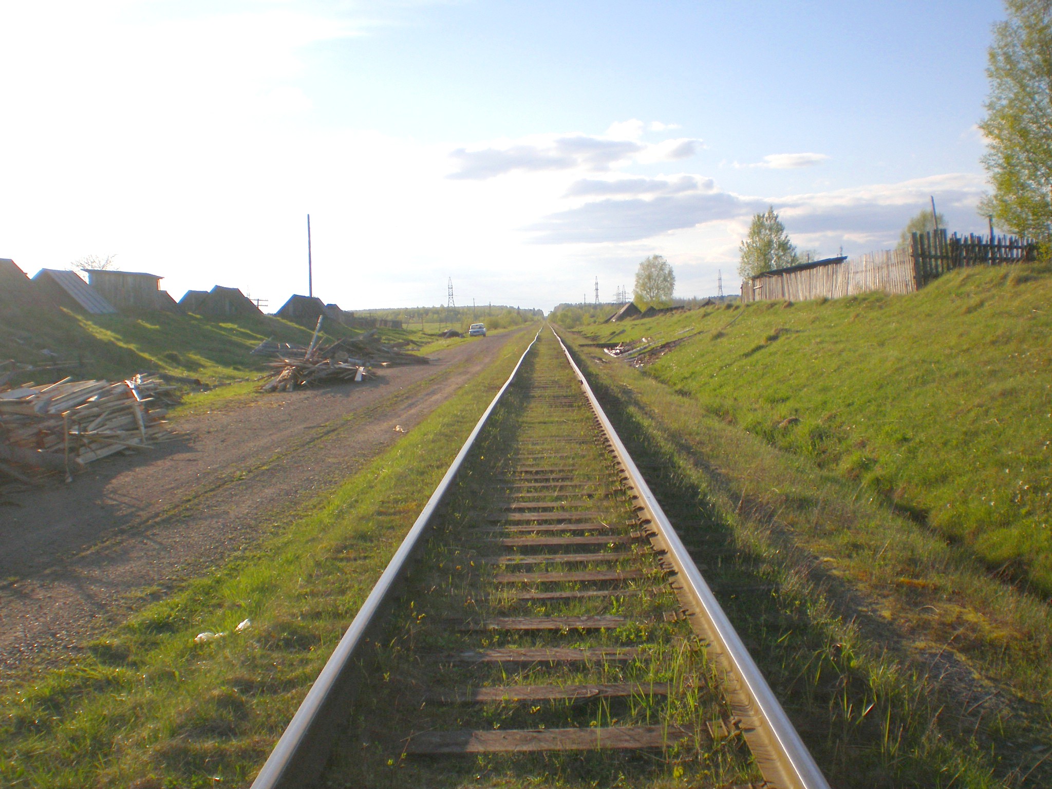 К северу от станции Верхнекамская. Впереди - станция Верхнекамская.