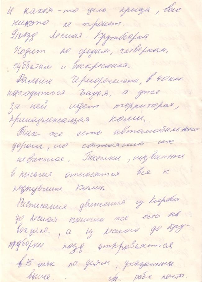 Ответ работника отделения связи посёлка Чернореченский на письмо-запрос, в котором содержалась