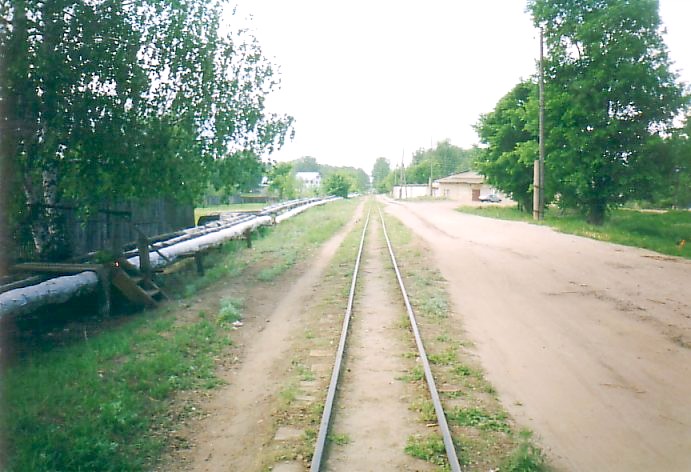 Линия узкоколейной железной дороги на улице Шлаковая, западнее станции Выкса-Верхняя